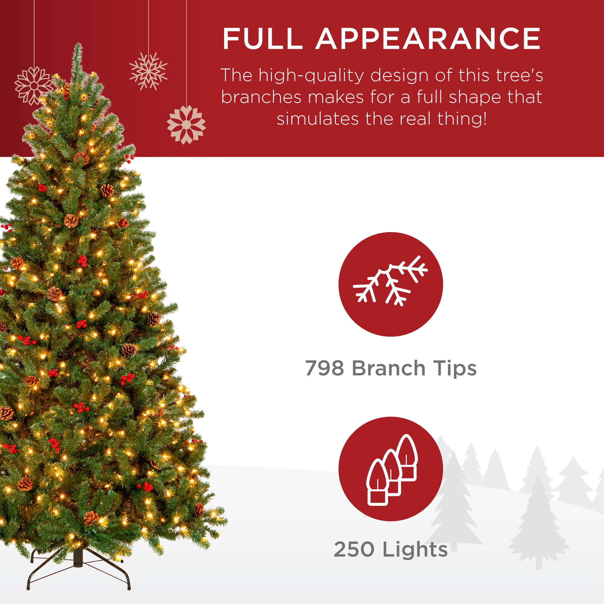 Best Choice Products 6ft Pre-Lit Pre-Decorated Holiday Spruce Christmas Tree w/ 798 Tips, 250 Lights, Metal Base
