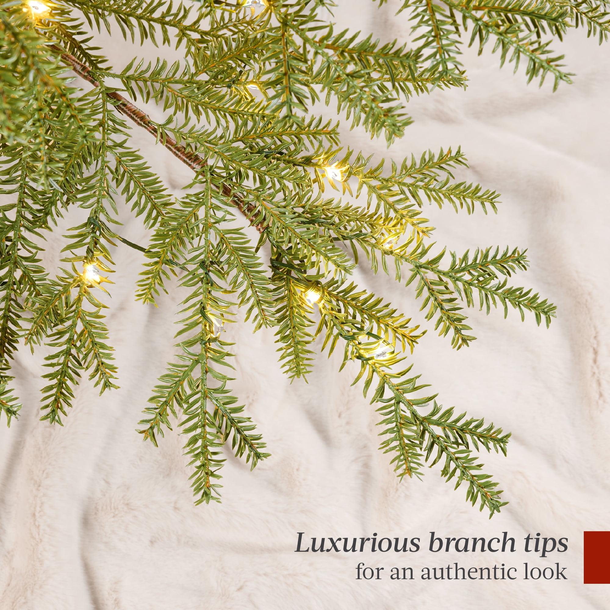 REALISTIC APPEARANCE: Dozens of broad, flat branches mimic the foliage of sparse confiner trees while a brown PVC trunk completes the natural, eye-catching appearance PREMIUM LIGHTED DESIGN: Control 9 light functions with a built in foot switch as hundreds of 2-in-1 white & multicolor LED lights come alive for a festive holiday display; Number of Lights (4.5ft/6ft/7.5ft/9ft/12ft): 100/200/300/400/900 EASY ASSEMBLY & CORDLESS CONNECTION: This 3-step assembly features a cordless light system-just stack the sections of the tree, fluff, and plug in the base; Fluffing times (4.5ft/6ft/7.5ft/9ft/12ft): 15-30 min/ 30-45 min / 45-60 min/ 1-1.5hrs/1.5-2hrs HIGH-QUALITY DESIGN: Crafted with durable metal hinges and flame-retardant PE branches that stand tall with the help of a sturdy metal base, so you can enjoy your tree for the holiday season to come! MANY WAYS TO DECORATE: The stiff, sturdy branches combined with the open design creates the perfect space to show off your best ornaments, garland, tinsel or DIY decor; branch tips (4.5ft/6ft/7.5ft/9ft/12ft): 522/880/1,240/2,494/6,015; OVERALL DIMENSIONS: 42″(Dia) x 72″(H) (including stand)