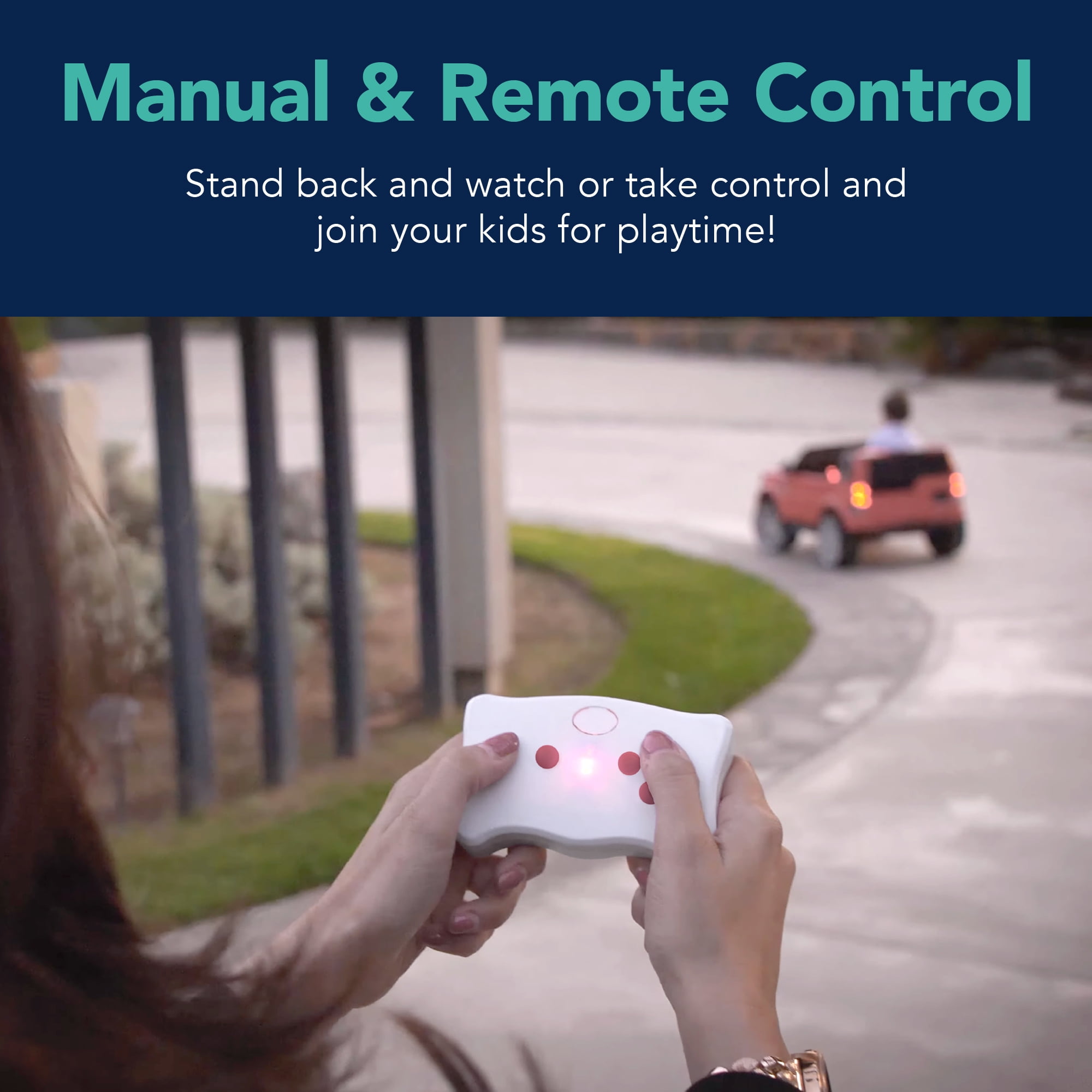 REALISTIC DESIGN: Single child design with a realistic foot pedal accelerator, LED headlights, and a built-in horn perfect for toddlers to get their first taste of driving MANUAL AND REMOTE CONTROL: Parents can let their child drive manually or use the remote to guide them when needed; remote has forward/reverse controls, parking function, and speed selection. CONNECT YOUR MUSIC: A built-in AUX outlet allows kids to plug in media devices to drive while jamming to their own selection of music RECHARGEABLE 6V BATTERY: Includes a charger to allow for hours of playtime and exciting adventures for your children 2 MPH MAX SPEED: Little ones can cruise through sidewalks or parking lots at a controlled yet exhilarating speed; OVERALL DIMENSIONS: 37.5″(L) x 24″(W) x 19.5″(H); Weight Capacity: 44 lbs.