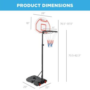 Best Choice Products Kids Height-Adjustable Basketball Hoop, Portable Backboard System w/ 2 Wheels – White