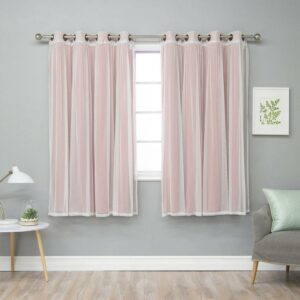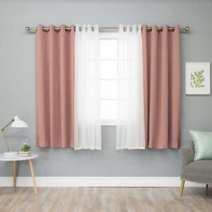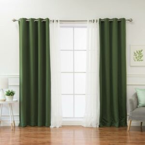 The fashionable, feminine style of the Best Home Fashion Mix & Match Tulle Sheer Lace Blackout Curtain – Set of 4 takes any room from mundane to marvelous. An easy way to achieve an on-trend layered look, this mix-and-match set includes two solid blackout curtain panels and two sheer tulle curtain panels. The triple-weave construction on the blackout curtains blocks up to 99% of incoming light while also insulating against heat and cold. Hang the sheer tulle panels over, under, or alongside the solid panels to find a look you’ll love. Metal grommets make for easy hanging, and the set is available in a choice of size and color.