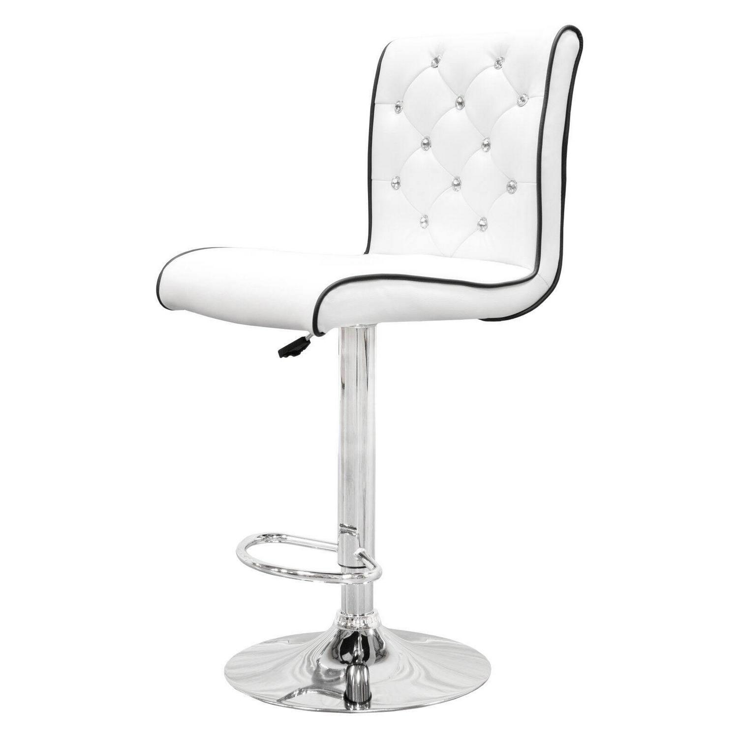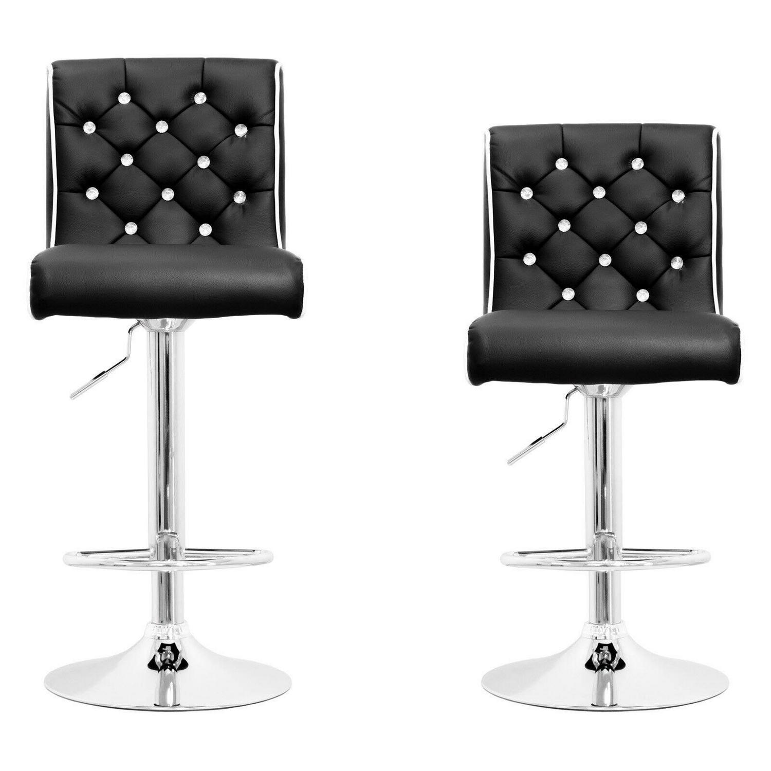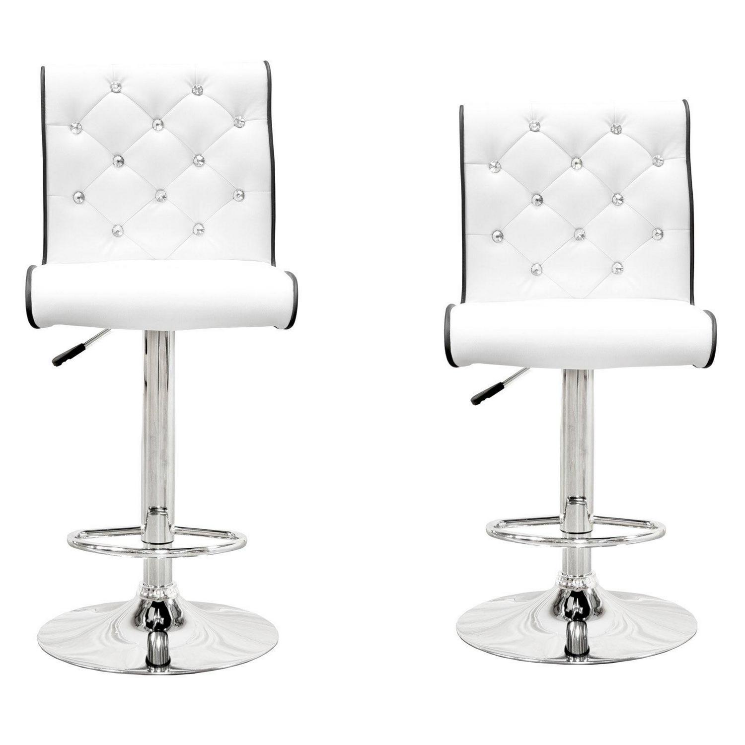 Bright sparkling faux crystals lend the Best Master Furniture Tufted Vinyl with Faux Crystals Adjustable Swivel Bar Stool – Set of 2 a luxurious look, accented with supple faux leather upholstery and contrast piping. These handsome bar stools include a lever to easily adjust the height, and the chrome bases give them a dash of contemporary flair.