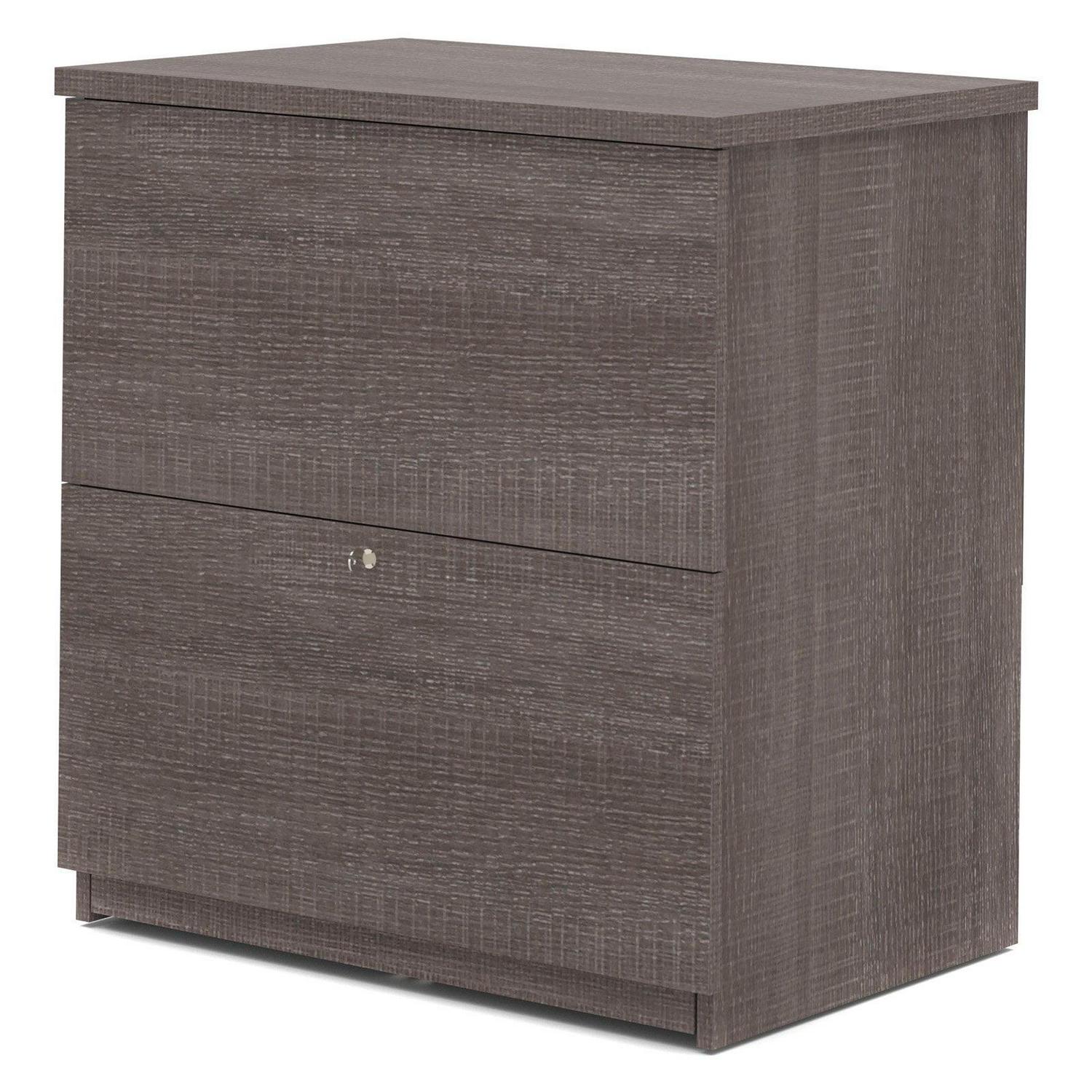 Bestar 2 Drawer Lateral Wood Lockable FileCabinet, Gray