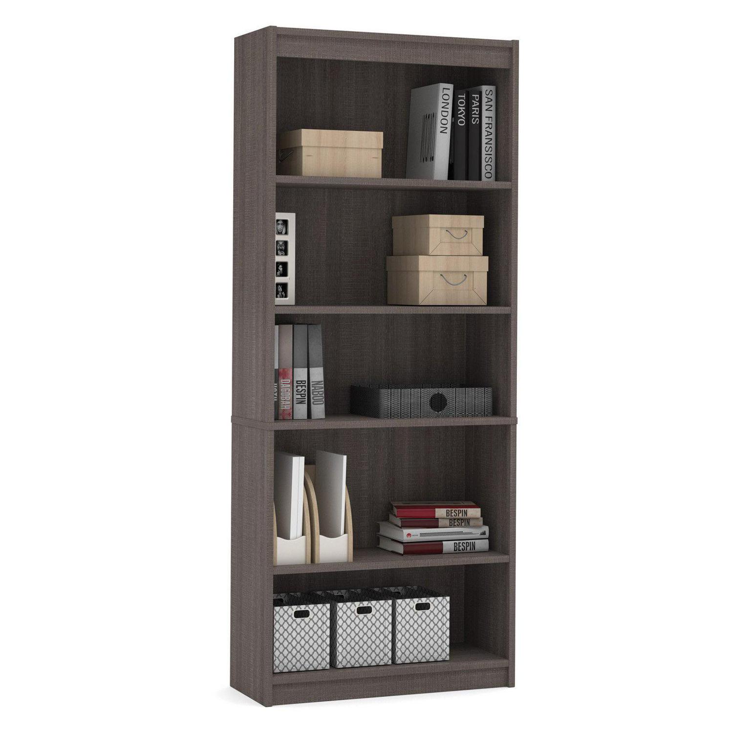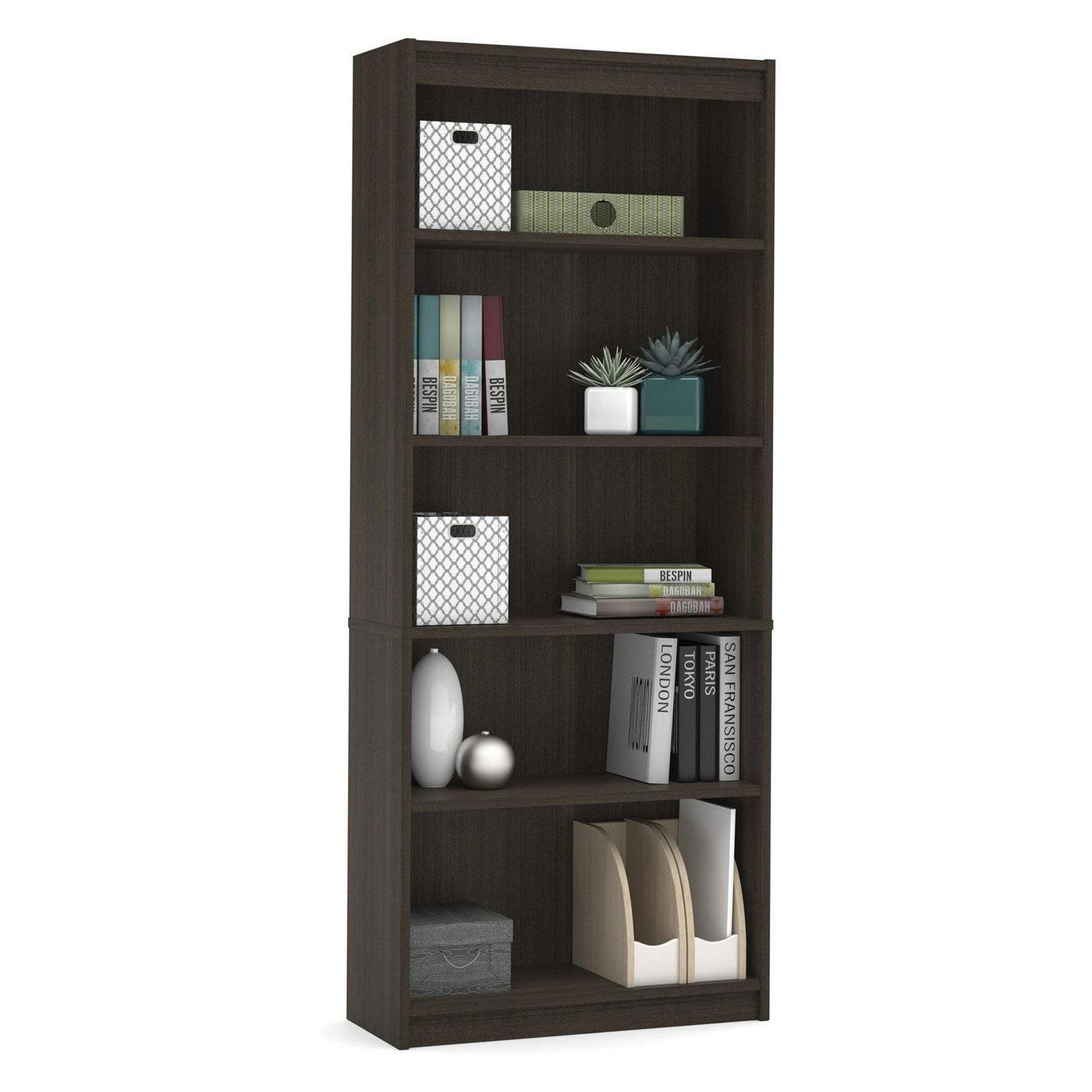 The long-lasting, contemporary Bestar Standard 5-Shelf Bookcase is perfect for your home office. It comes complete with five shelves for displaying books and knickknacks. Three of these shelves are adjustable to help you customize your bookcase. Crafted from wood and wood veneers, this bookcase is offered in a variety of available finishes to complement your home office.