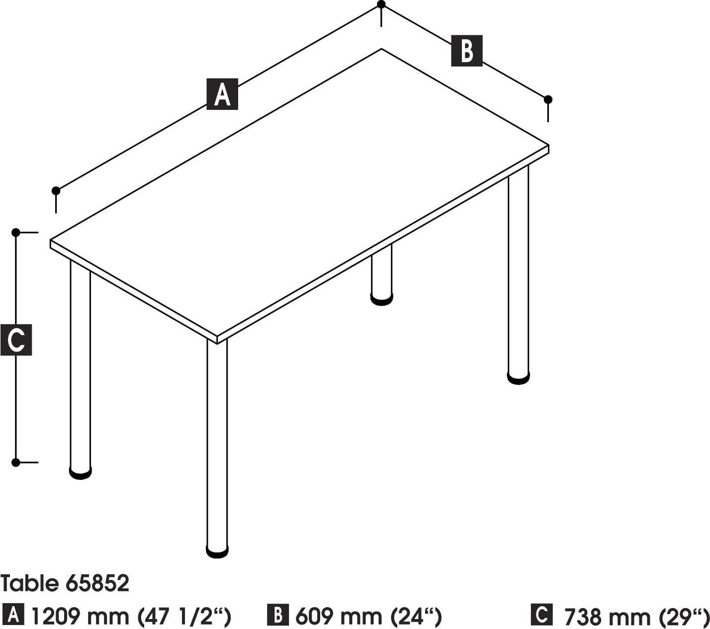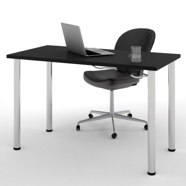The Bestar tables with metal legs can fit in any room and adapt to many uses. Durable 1 in (2.5 cm) commercial grade work surface with melamine finish that resists scratches, stains and burns. Round metal legs in gloss silver finish. The Legs feature levelers to adapt to any floor irregularities.