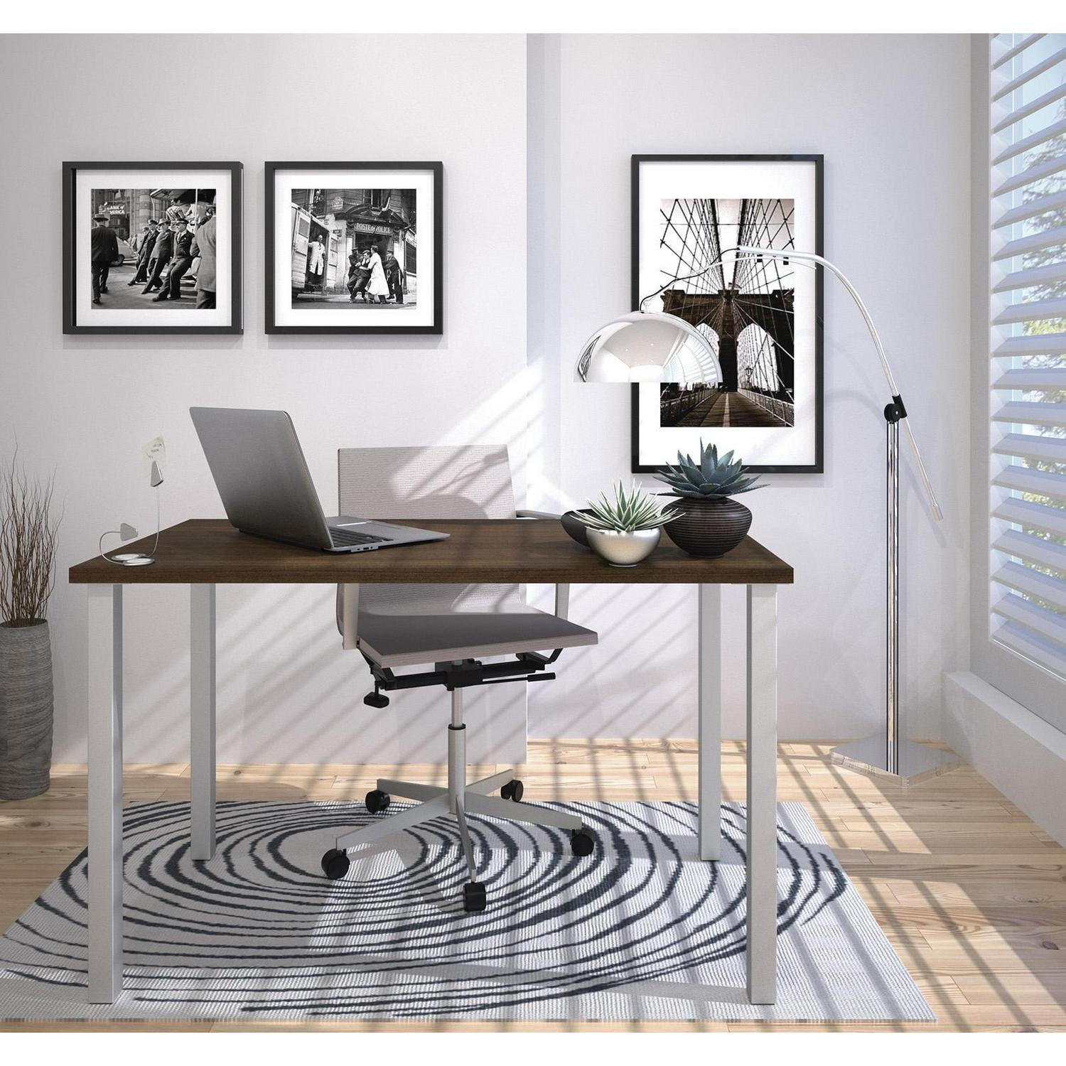 This Table Desk allows you to reach all of your equipment and supplies. The desk s metal legs in matte silver bring a touch of style to any office. This desk is designed to be used in many ways. This Table Desk is backed by the Bestar 10 Year Manufacturer s Warranty. North American made with local and imported parts.