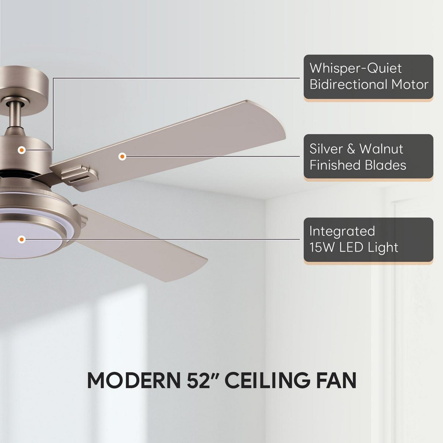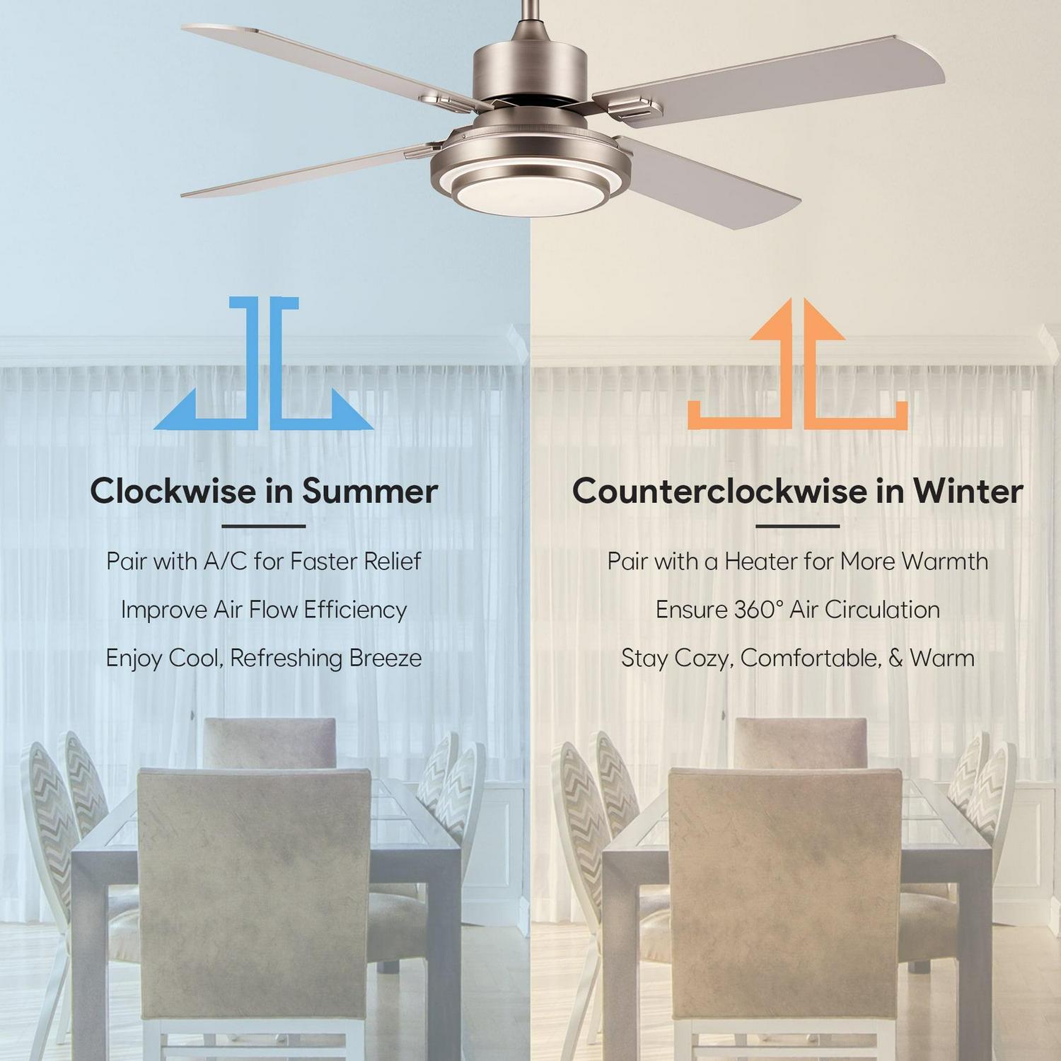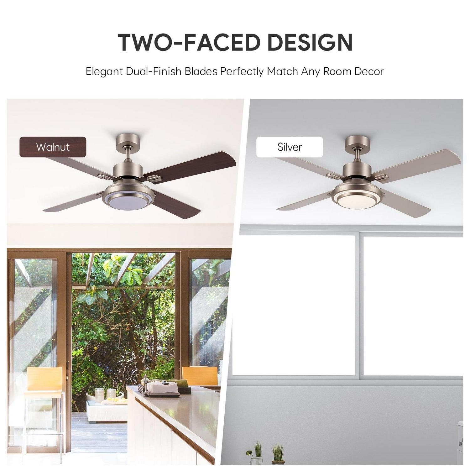 – Suits All Styles: Our 52 inch ceiling fan with light brightens any space in your home or office, combining 4 dual finish blades with an acrylic shade to complement any decor from mid century modern to rustic farmhouse.