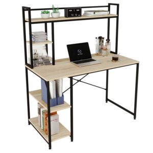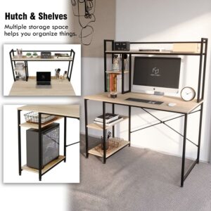 Bestier 47 Inch Computer Desk with Hutch and Shelves Adjustable Storage Bookshelf in Oak