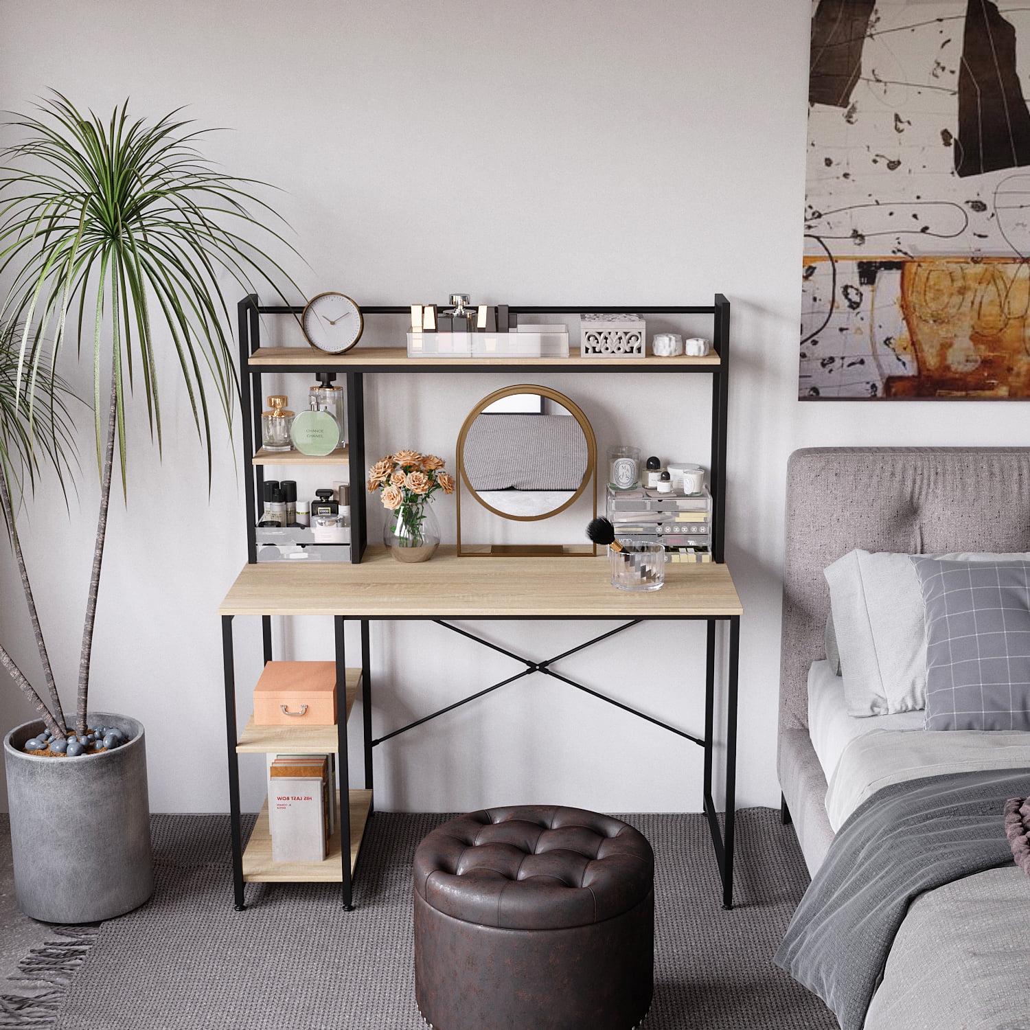 – ADJUSTABLE SHELVES – The shelves under the desk could be adjusted to different heights according to your needs to store the CPU tower, printer, and books.