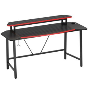 Bestier gaming desk and office table measures 63″(L)x 23.23″(W)x 35.9″(H), having a spacious desktop that can meet various forms of use. Whether you use it to play computer games or use it for office work, we have carbon fiber and wooden table tops you can choose from, it will definitely satisfy you here. The spacious desktop is enough to place all your electronic devices, and a removable monitor stand could be convenient for you to use, letting every gamer get the best gaming experience. A durable and stable metal frame will provide super stability.