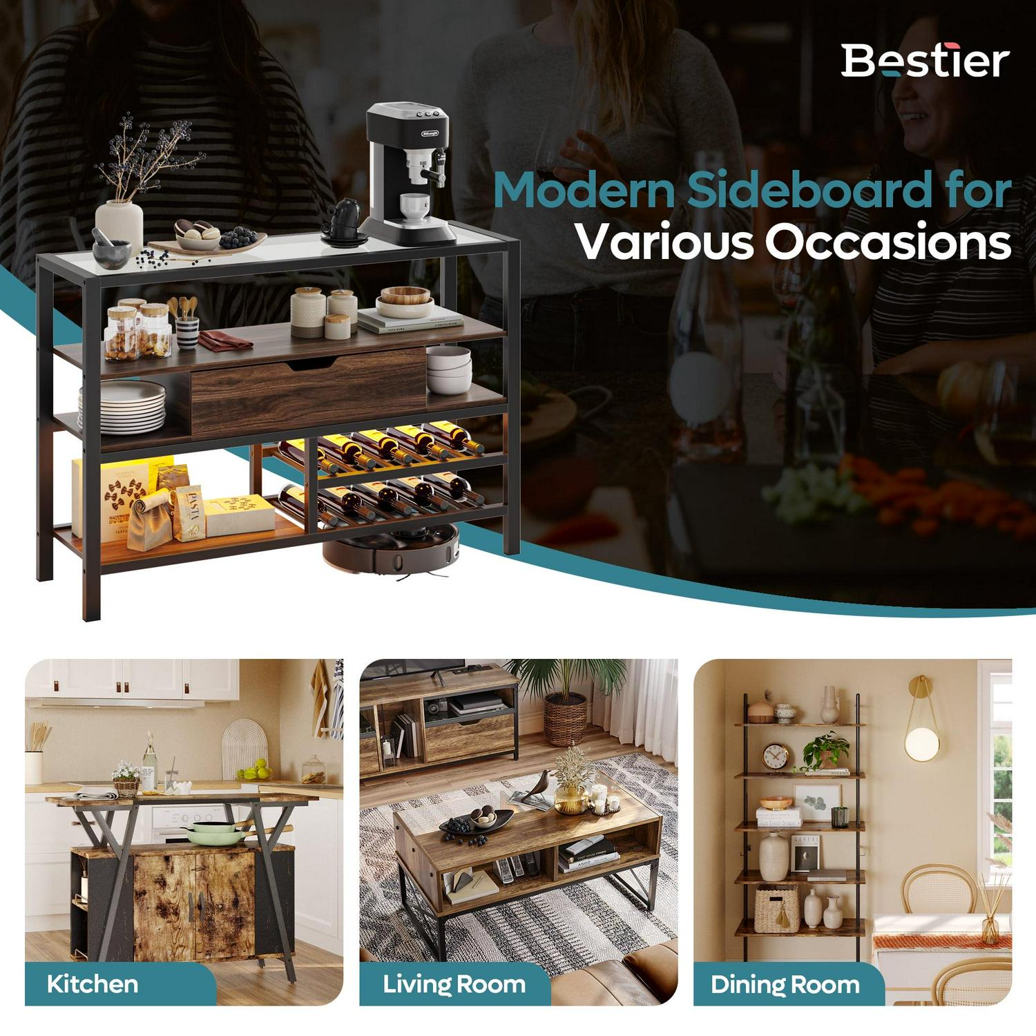 – Durable Construction: Crafted from high-quality materials, the Bestier Kitchen Console Table ensures durability and stability for long-lasting use. Its sturdy design can handle daily use and keep your belongings secure.