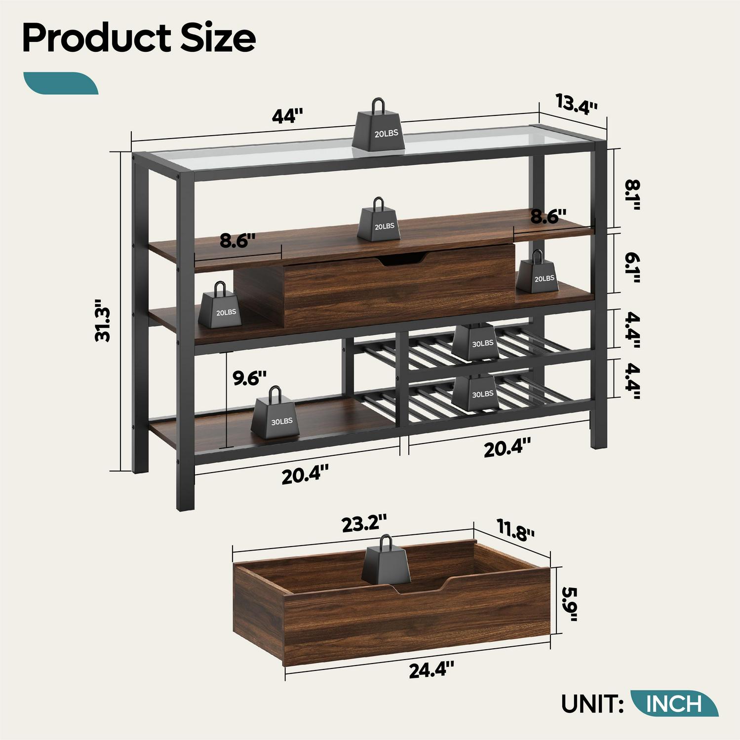 – Bottom Weight Capacity: 30 lbs