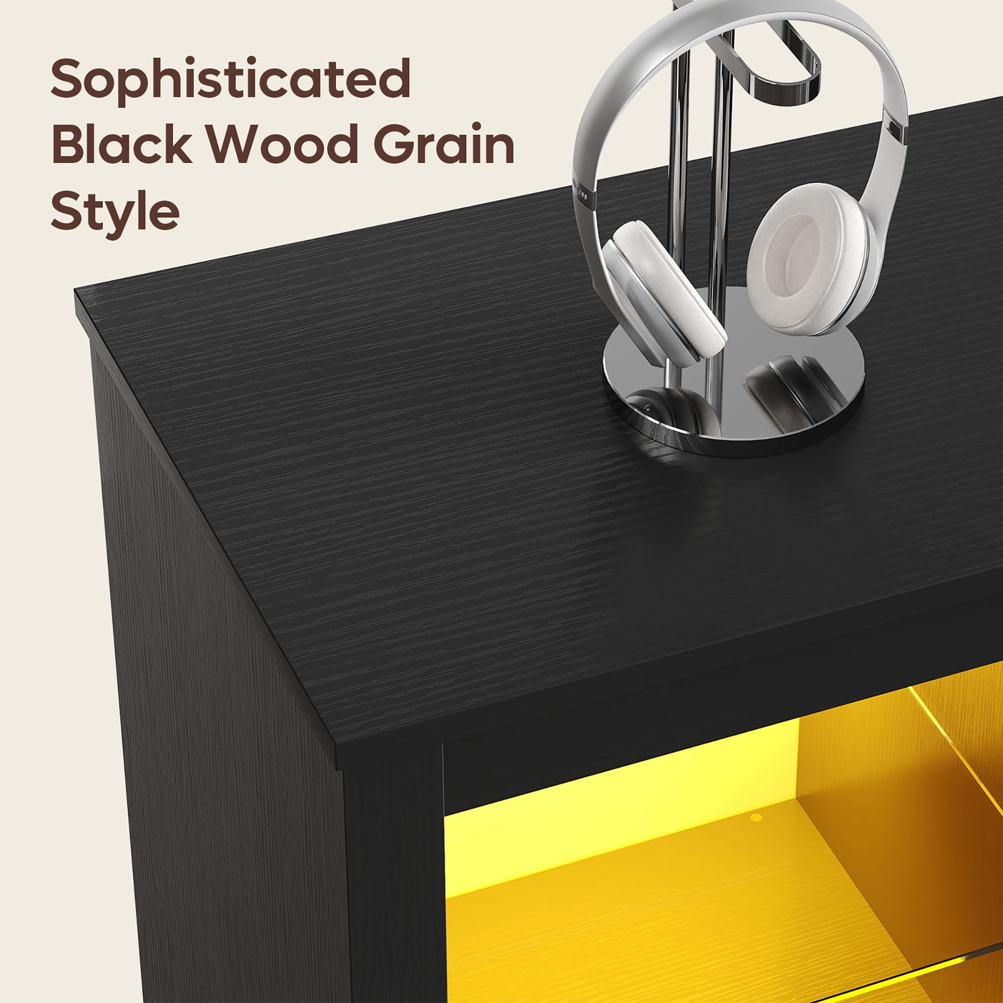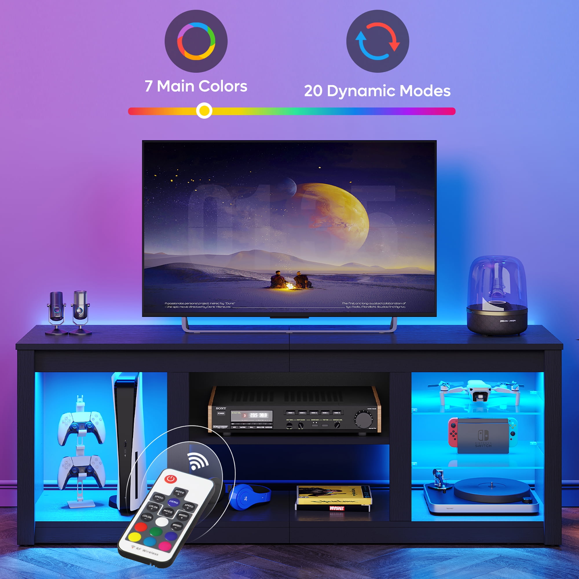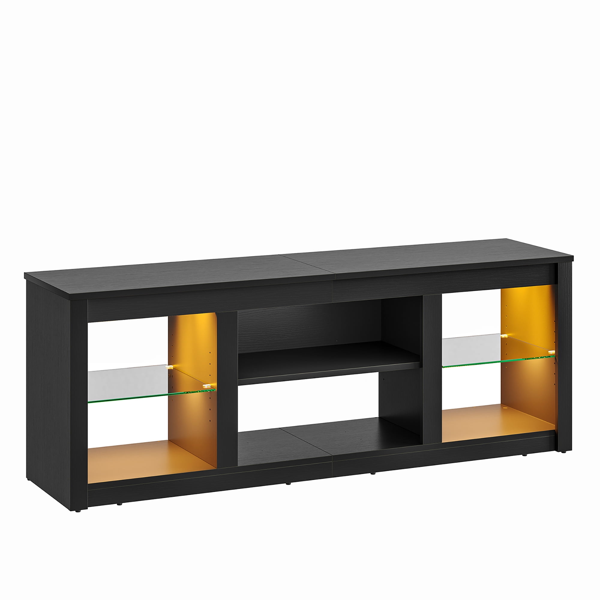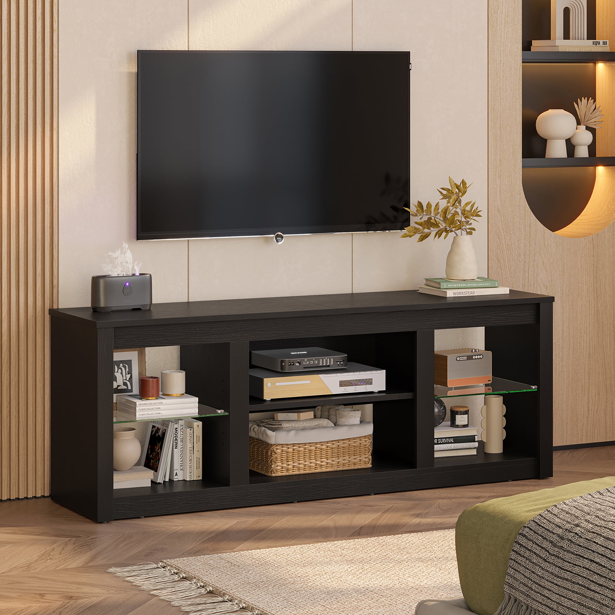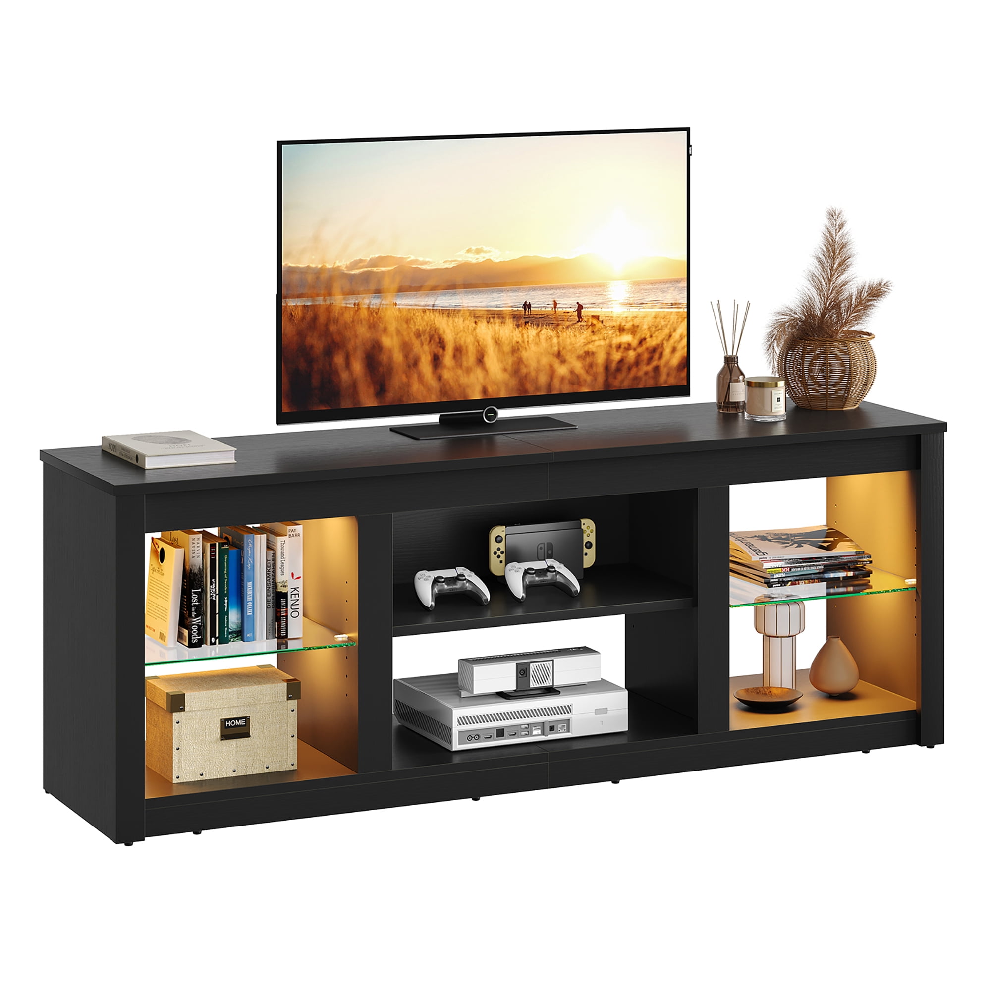 Bestier LED TV Stand for TVs up to 70″, Entertainment Center with Storage Shelves, Black