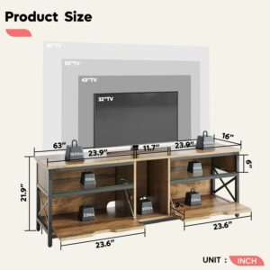– Modern TV Stand: Measuring 63 x 15.75 x 22 inches, Bestier TV stand is crafted from high-performance P2 wood board. Its industrial design features an adjustable height, a sturdy X metal frame, and flip-down doors, accommodating TVs from 32 to up to 70″.
