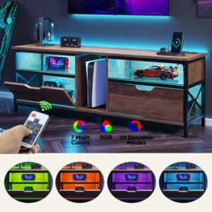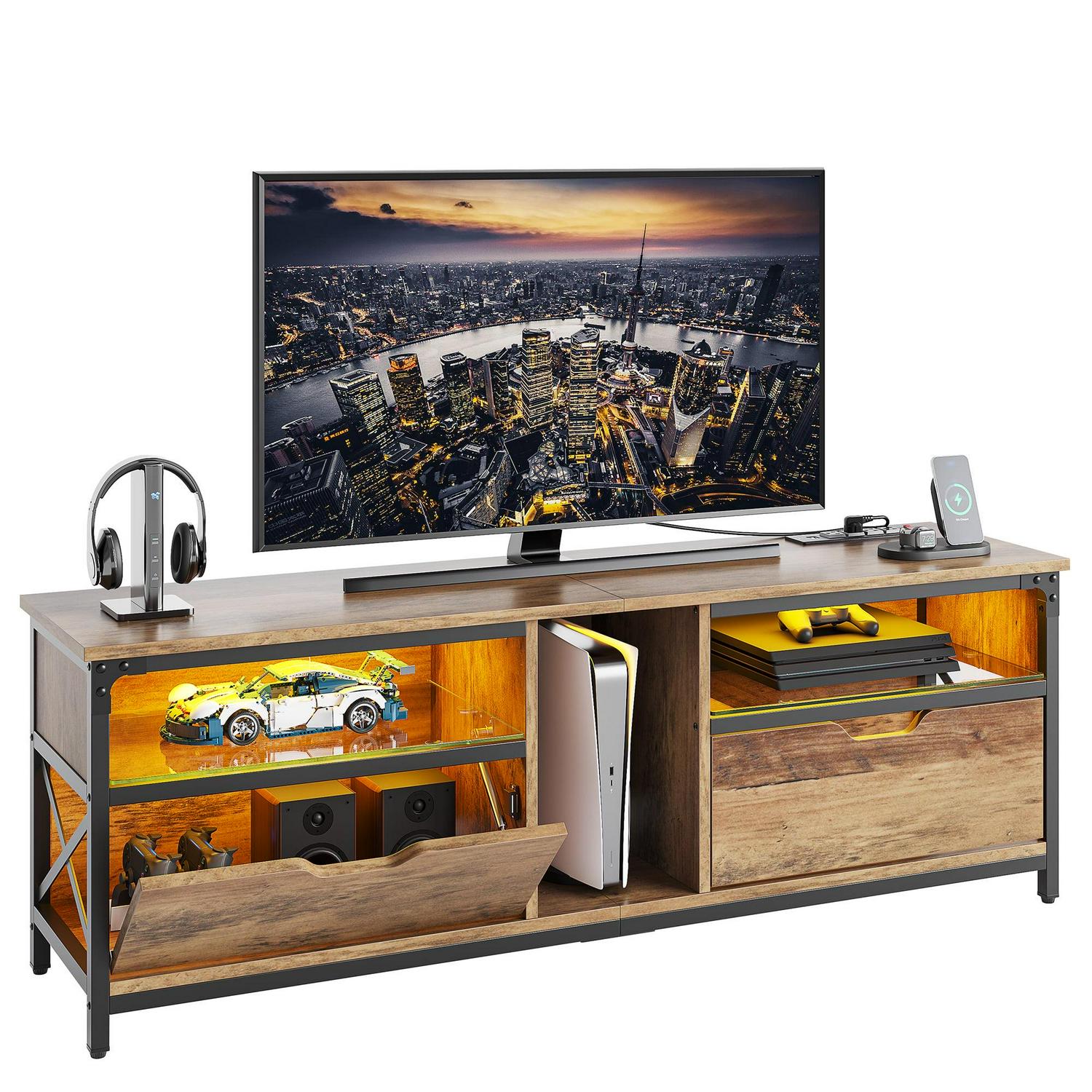 Bestier Modern TV Stand with Charging Station and RGB LED Lights for TVs up to 70 , Weathered Rustic Oak
