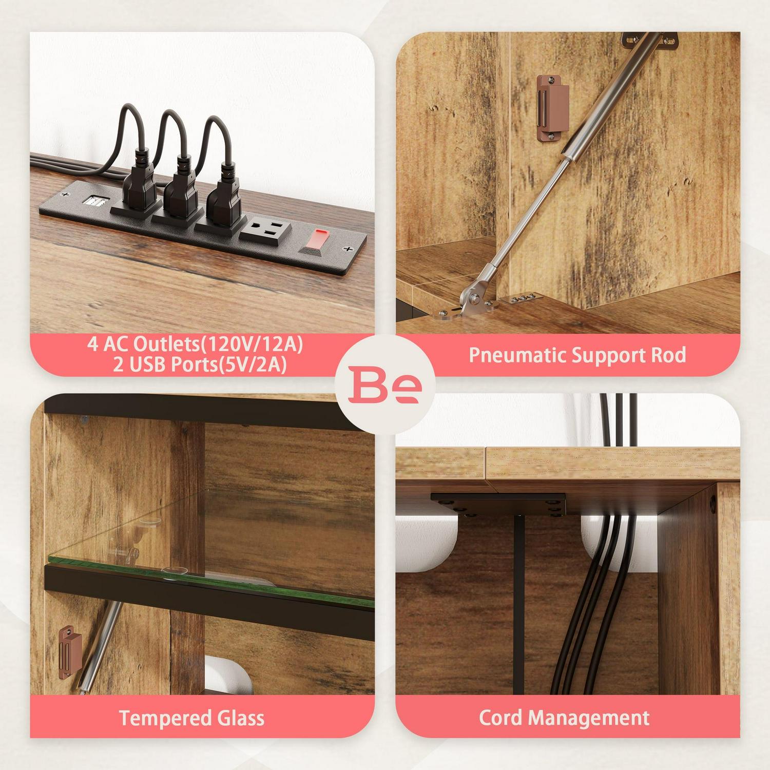 – Convenient Power Supply: This modern TV stand comes with built-in sockets for your electronic devices. You can easily charge your phones, TVs, gaming consoles, and other equipment, eliminating the hassle of managing multiple cables and chargers.