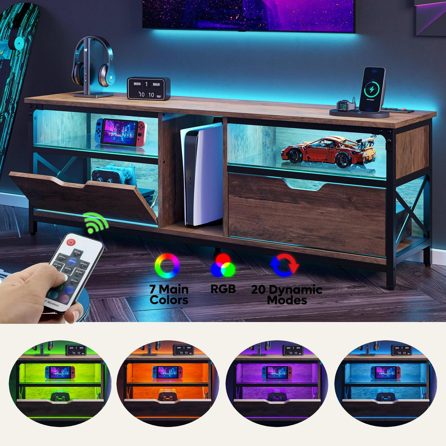 – Ambient LED Lighting: Our TV stand is equipped with LED strips that offer 20 color options. With a handy remote control, you can easily change the atmosphere of your living room, gaming station, or bedroom, adding a touch of fun and joy to your family gatherings or solo relaxation time.