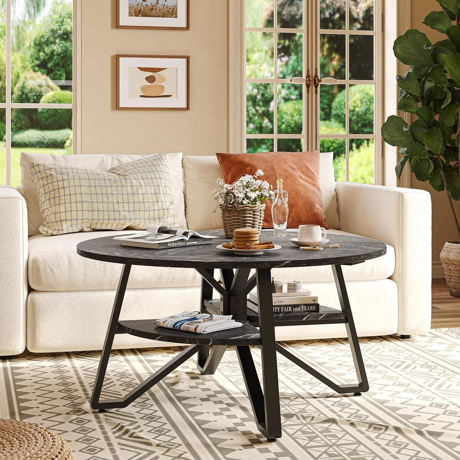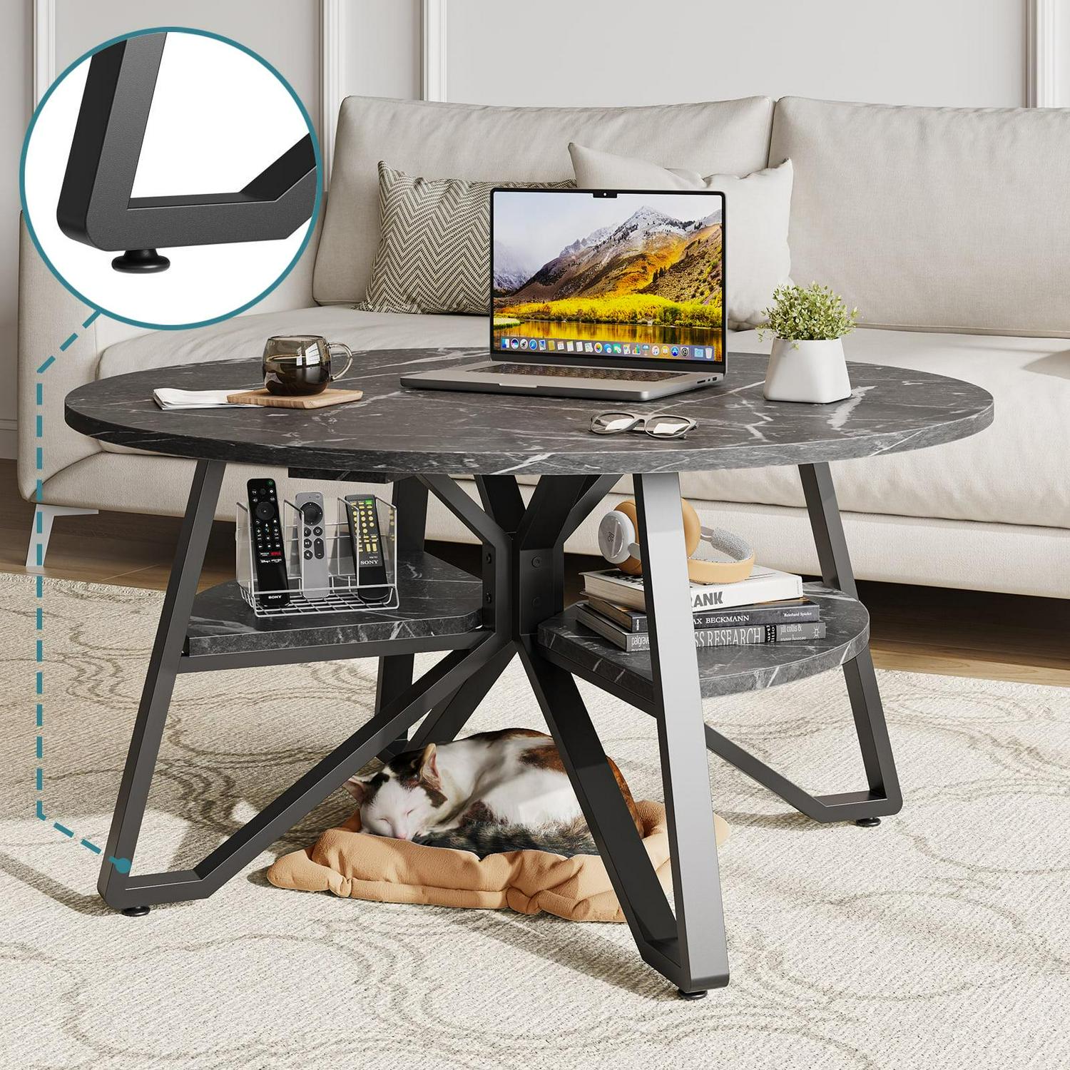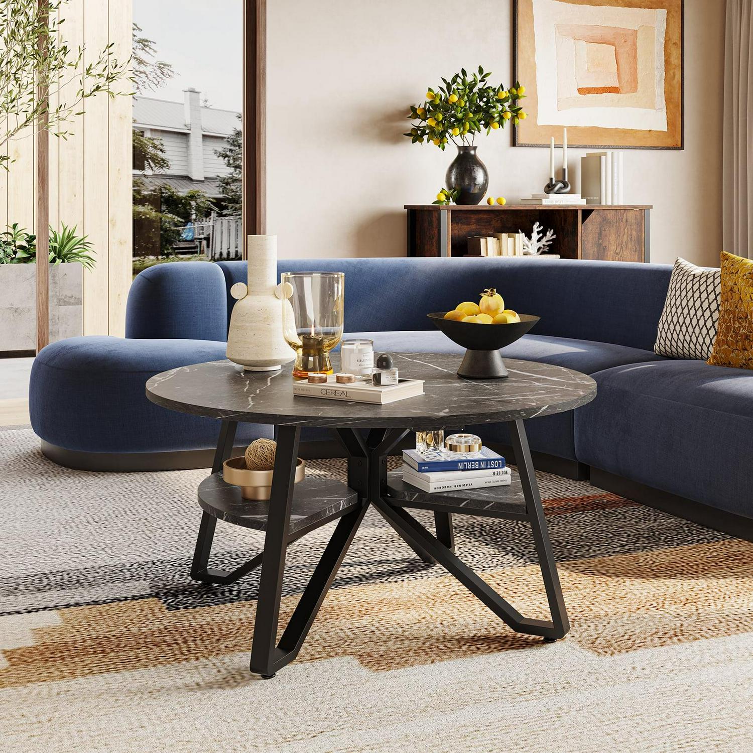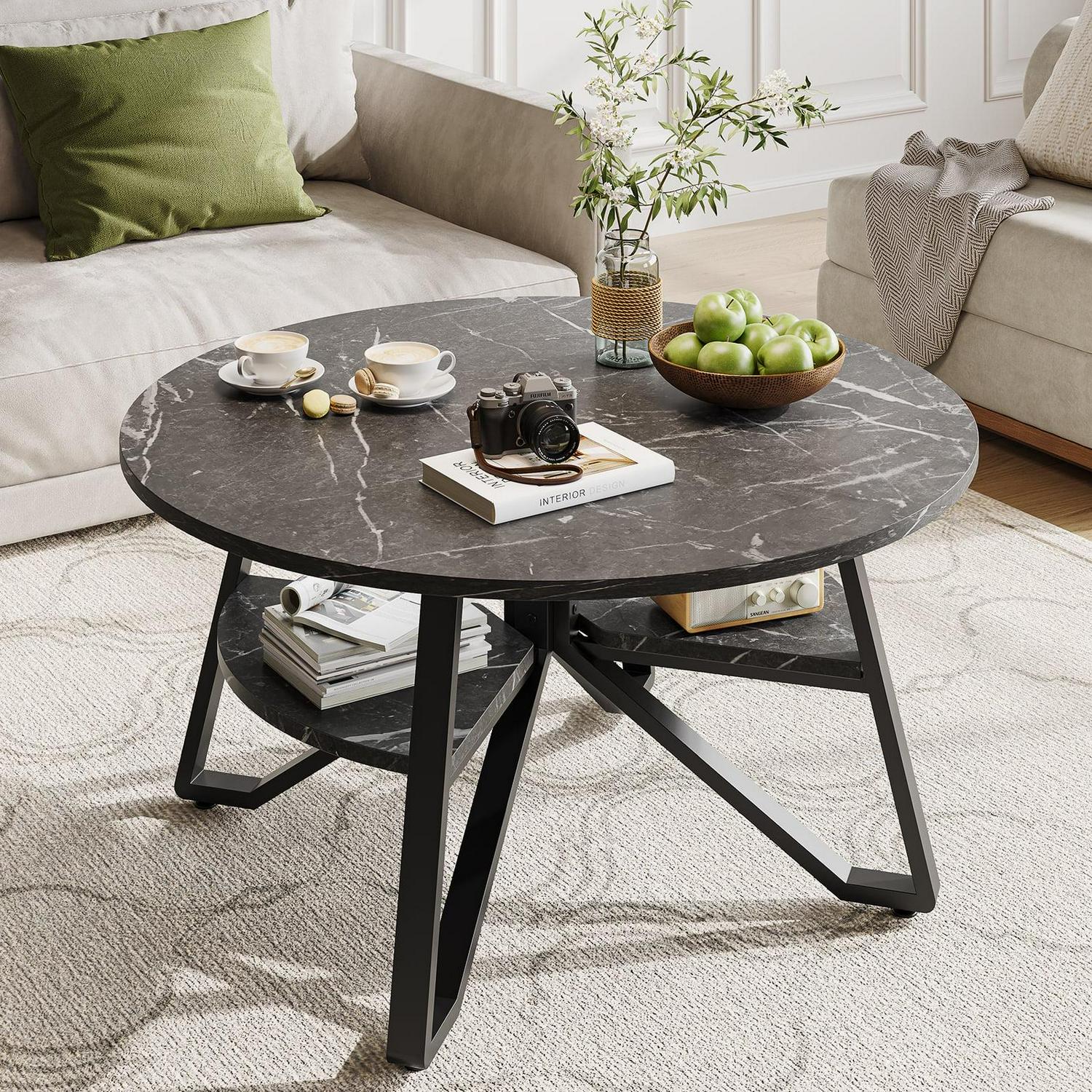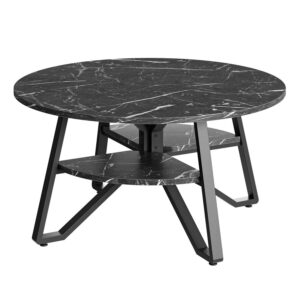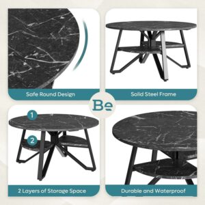 Bestier Round Coffee Table with Storage, Living Room Tables with Sturdy Metal Legs, Black Marble