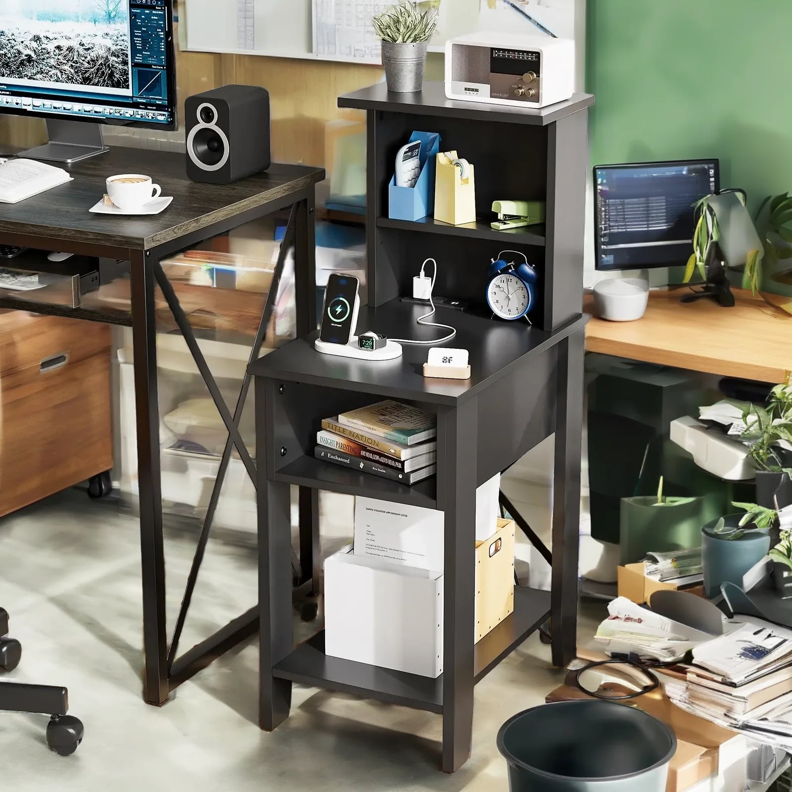 Experience convenience and style with our Bedside Table featuring a built-in charging station with 2 AC outlets and 2 USB ports. This versatile nightstand offers ample storage with dual-tiered shelves, a spacious tabletop, an open cabinet, and an extra lower shelf. Crafted from durable particle board, it supports up to 242 pounds. With its sleek design and ideal height, it fits perfectly beside your bed or sofa and integrates seamlessly into any room. Assembly is a breeze with our easy-to-follow instructions.