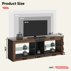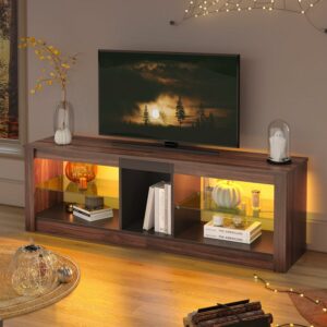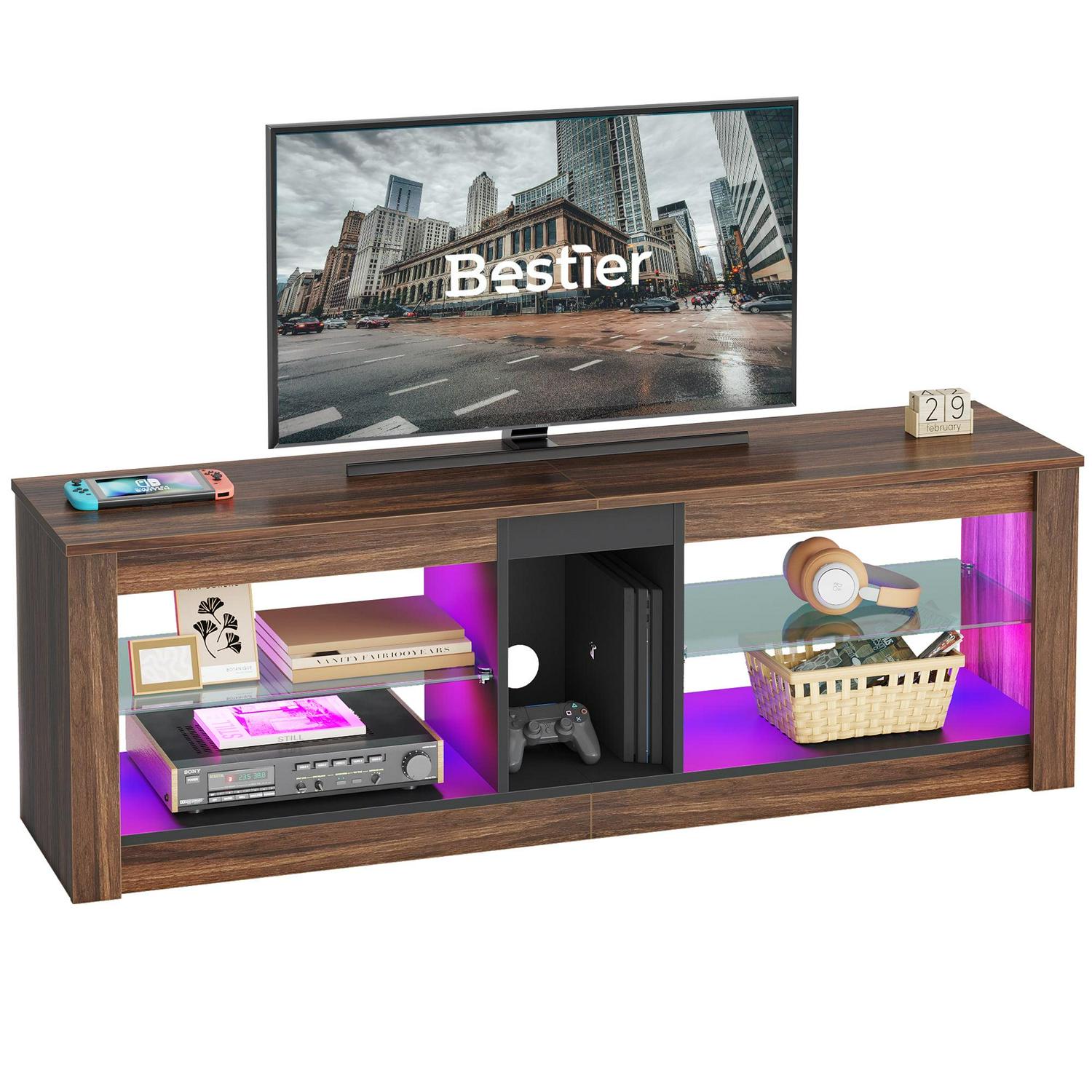 Bestier TV Stand for Tvs up to 65”, Temper Glass Shelves with Storage Cabinet, Walnut