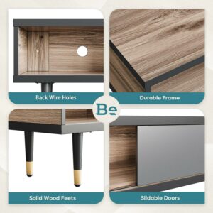 Bestier TV Stand Mid-Century Modern with Sliding Doors for TV up to 85” for Living Room, Pinewood