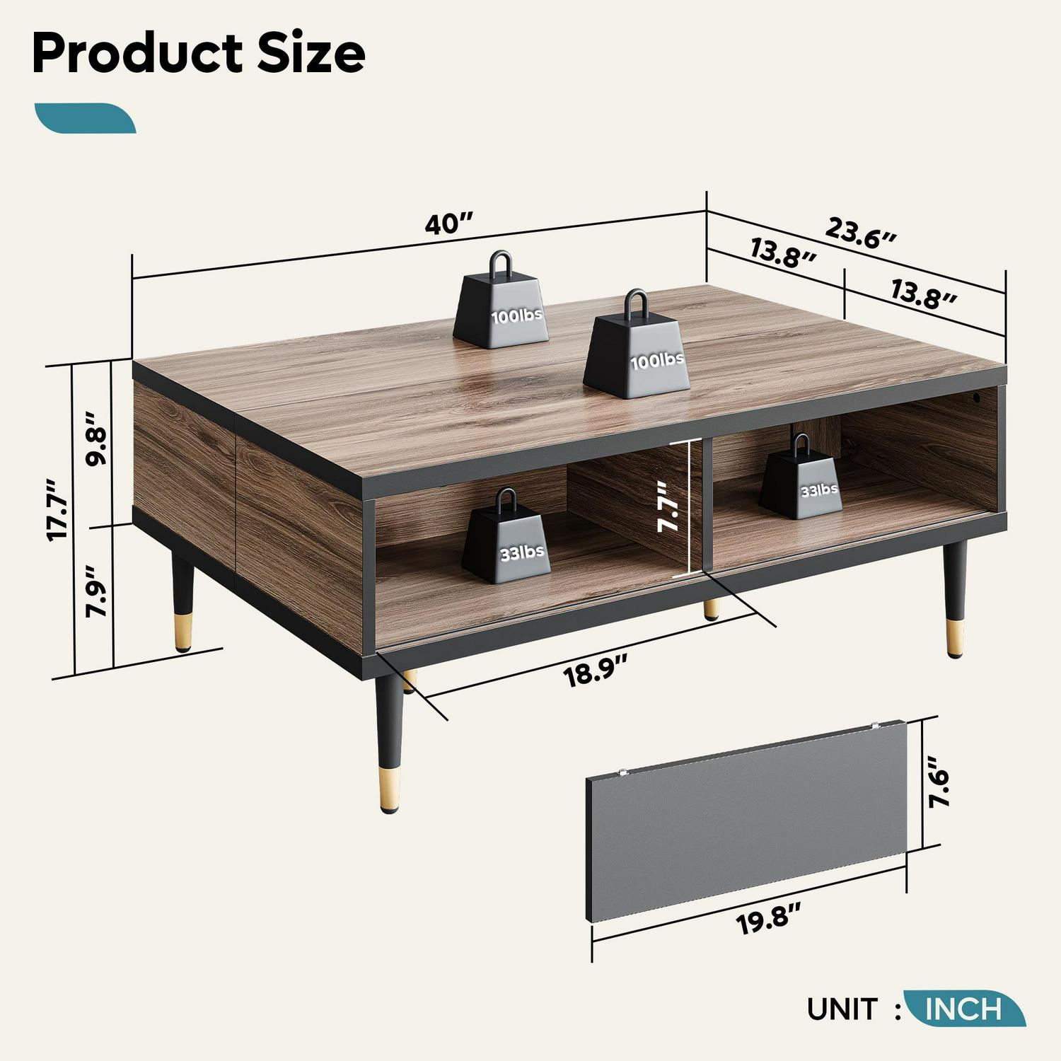 - Assembly Shape 2–Coffee Table Dimension: 40″ (L) x 23.6″ (W) x 17.7″ (H)