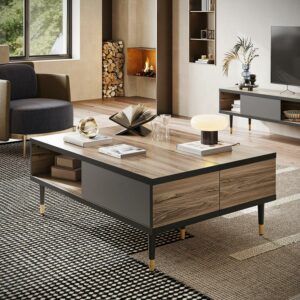 – Modern Design: Stylish design with clean lines, two kinds of material walnut and pinewood for your choice, 4 cable holes in the back for wire management.