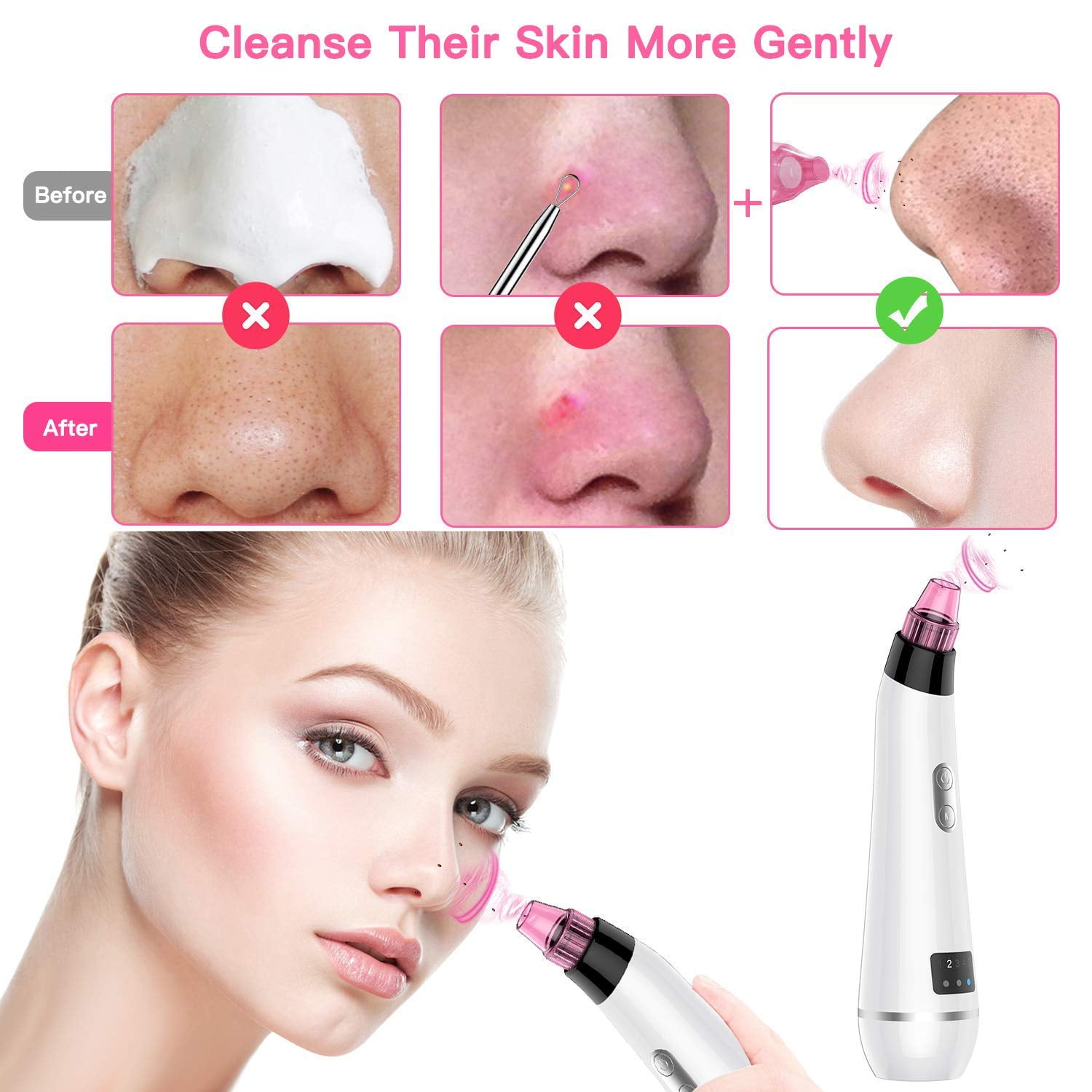 Charge USB LED Display Ergonomic Desigh Replaceable Tips Beauty Lights Super Suction