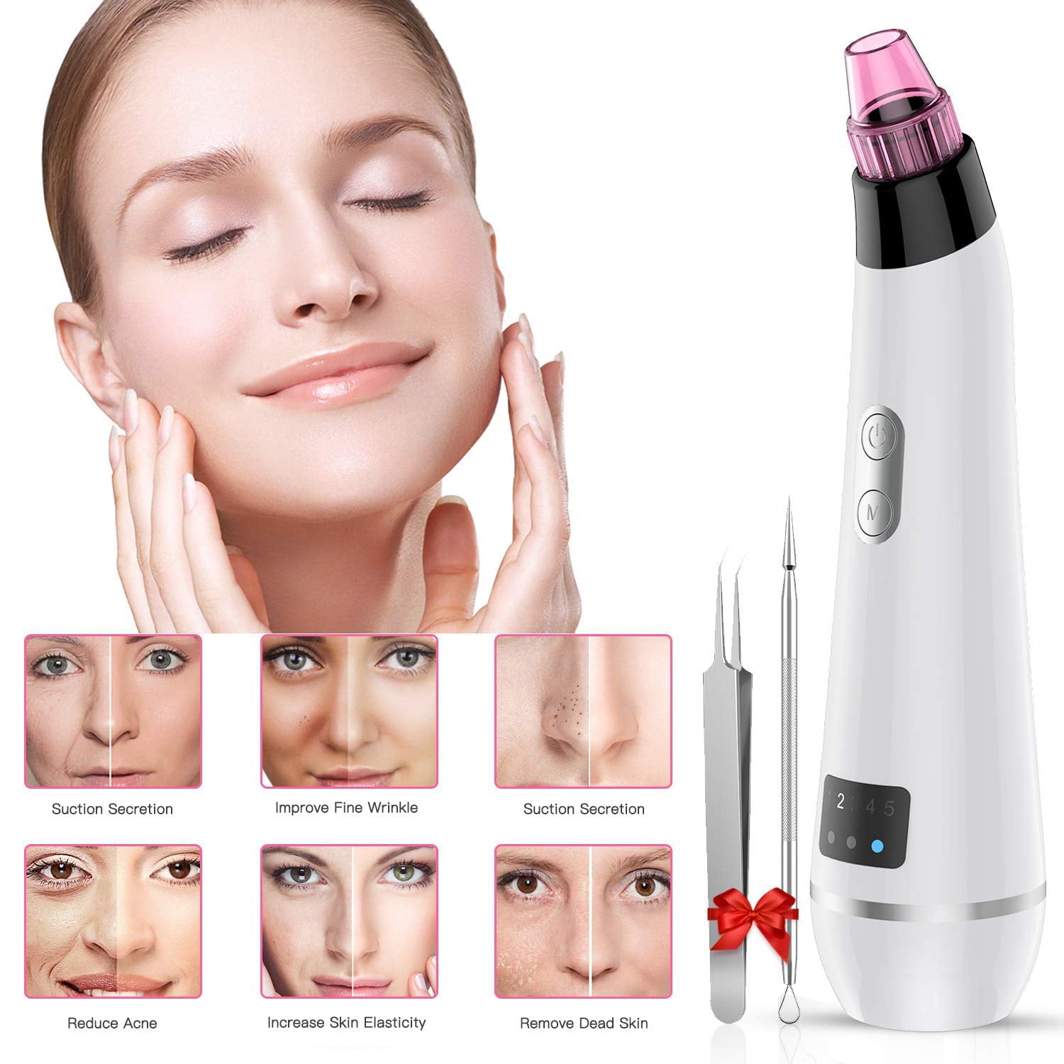 BESTOPE Blackhead Remover Vacuum, Skin Vacuum Pore Remover Cleaner Blackhead Suction Tool Electric Acne Comedone Suction Facial Device with IPL Beauty Lamp 2 Blackhead Extractor Tool for All Facial Skin Treatment 【UPGRADED TOP BLACKHEAD REMOVER 】The BESTOPE upgrade pore cleanser designed with 5 different function suctions and 5 intensity Levels for all types skin, equipped with 2 additional pore extractors. A perfect solution to get rid of stubborn blackheads, whiteheads, dead skin, grease and massage, tighten the skin. and bring your beautiful skin back on your face.【UNIQUE IPL BEAUTY LAMP TECHNOLOGY 】With 3 color professional air pump technology, red light for softening skin and restoring skin elasticity. Green light for brightening skin and making skin tender and transparent. Blue light for repairing skin and conditioning skin secretion. The pore suction vacuum meets all your skincare needs.【MORE PROFESSIONAL & EFECTIVE & SAFER 】FDA, FCC, CE, ROHS certificated. Our suctions of our blackhead remover vacuum is made from top food grade resin. Use vacuum absorption and IPL technique for different skin conditions. It is more effective and safer than traditional facial cleaning method.【 INTELLIGENT & PORTABLE 】Design with intelligent LED display,our facial blackhead remover can be used to check the suction level and types of IPL beauty lamp. It conforms to the principles of human body engineering and handhold design, easy to use and carry. You can enjoy your professional SPA skin care at home or traveling. Excellent package will serve as a perfect Christmas gift to your loved ones.【 EASY TO OPERATE 】Before use blackhead removal tool, please use hot compress for 3-7 minutes to open the pore and use a blackhead export liquid to make the blackheads emerge to the skin surface. SWEET WARM: Don’t let the face vacuum rest on one spot for too long, and once you’re finished, please soothe your skin by applying a frozen sheet mask.