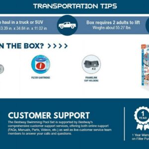 – Contents: 1 pool, 1 filter pump (compatible with Type I cartridge).