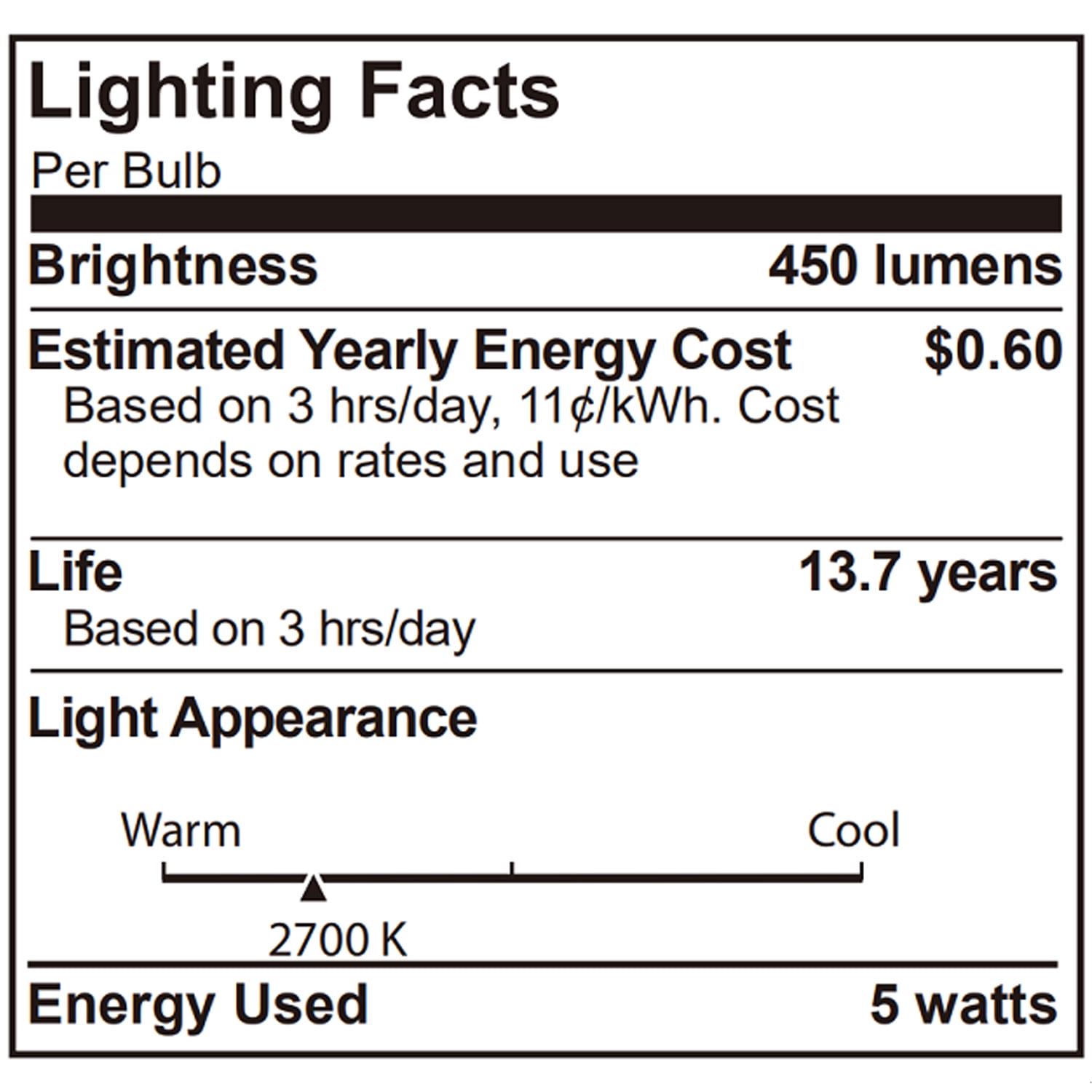 - Color temperature: Soft white 2700K