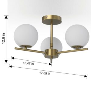 Better Homes and Gardens 17 Architectural Flush Mount Ceiling Light, Gold Finish Frosted Glass Shades