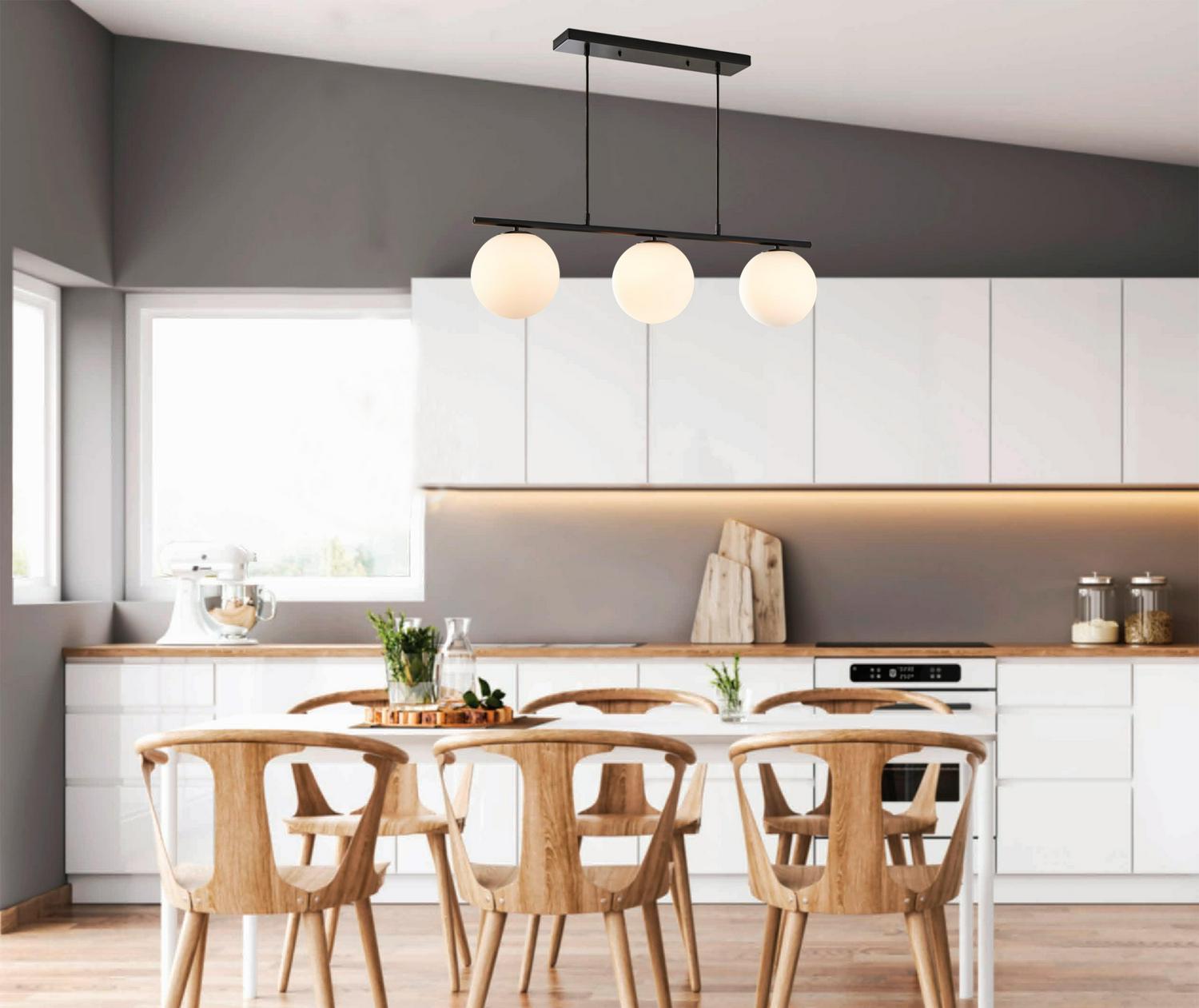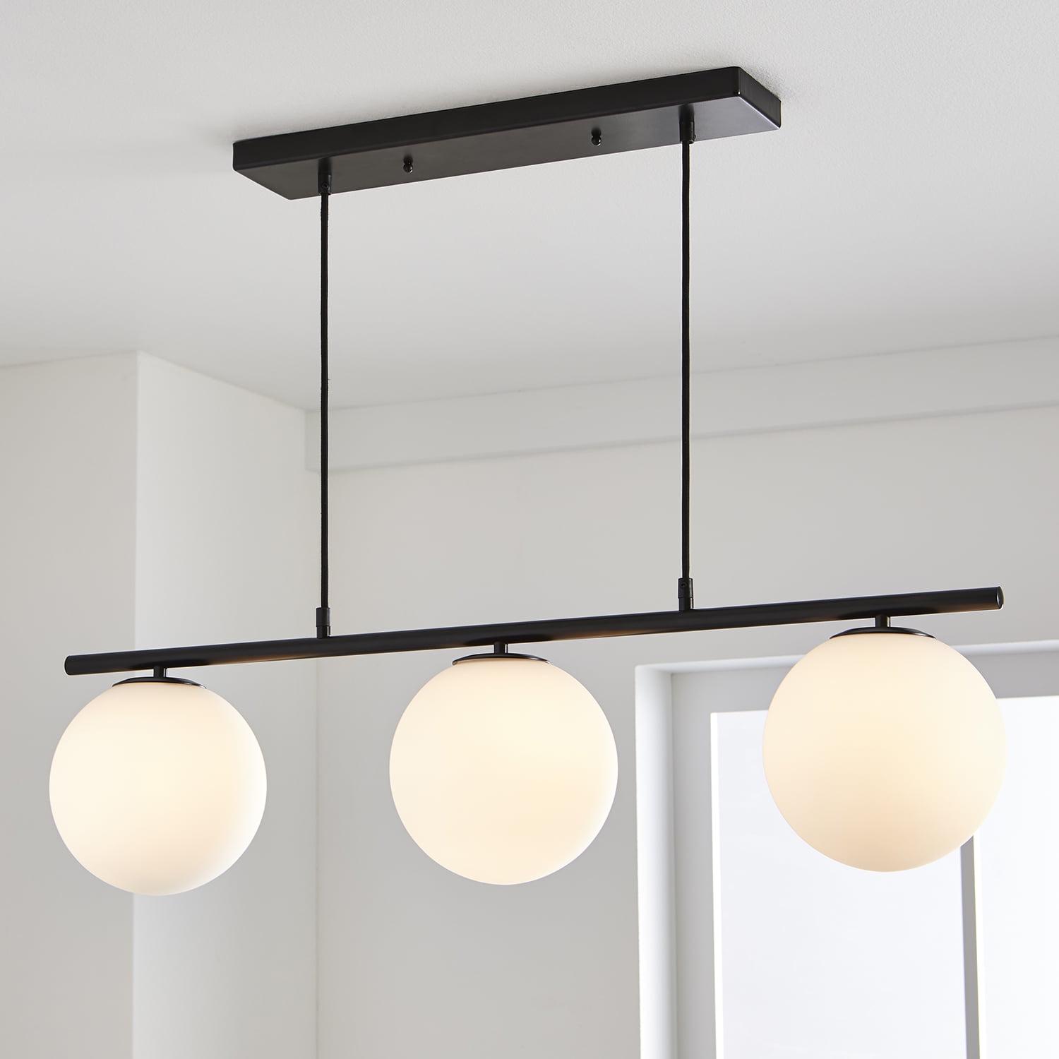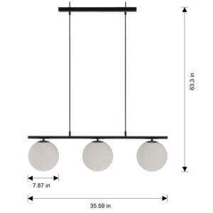 Better Homes and Gardens 36 Architectural 3-Light Island Pendant Light, Black Finish Frosted Glass Shades