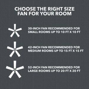 – Keep Cool With The Correct Ceiling Fan Size: For ultimate performance, choose the best ceiling fan size for your room; This 52 inch ceiling fan is ideal for medium to large rooms up to 400 sq. ft. such as bedrooms, dens, dining rooms, and more