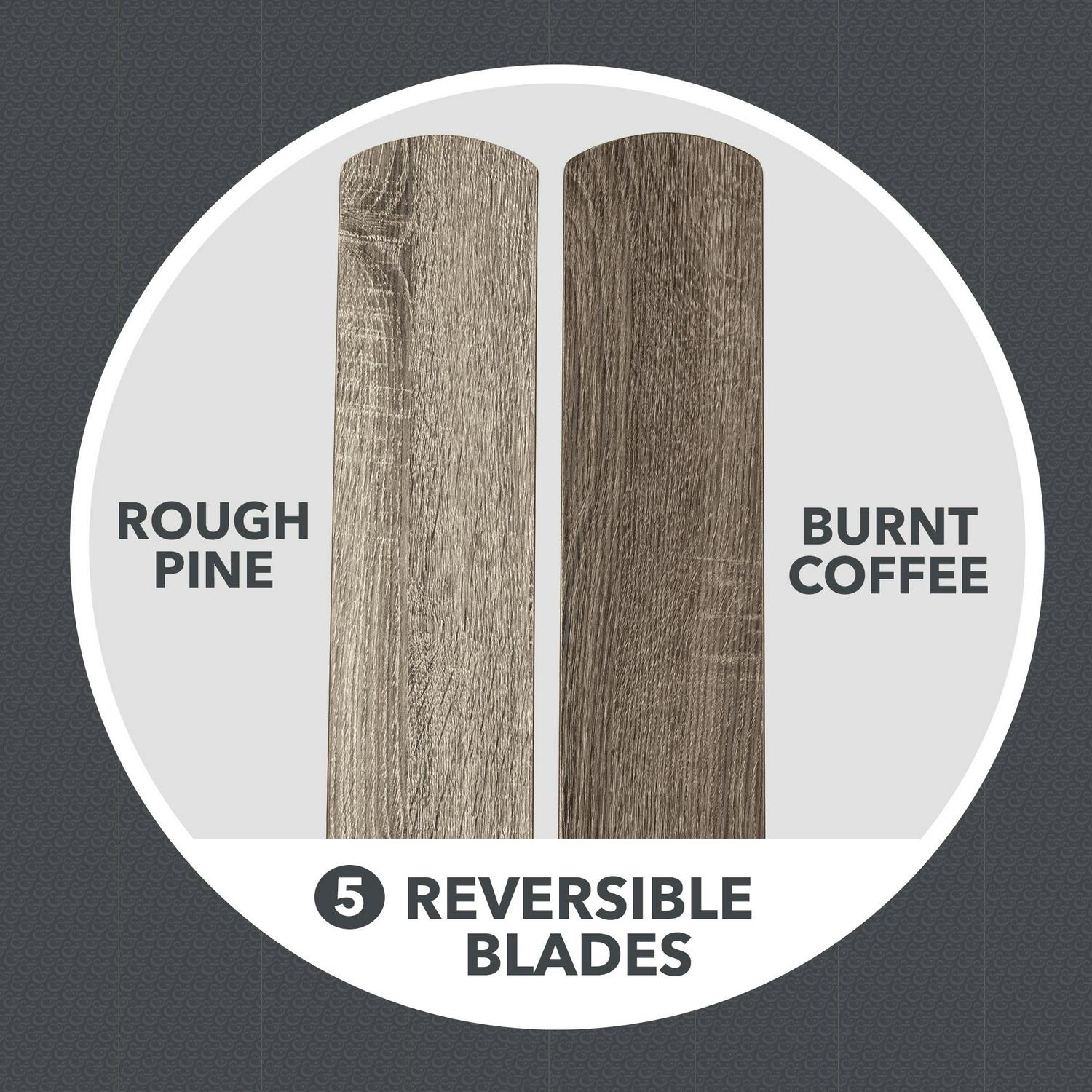 – Modern Dual-Finish Blades: This fan comes with a different finish on each side of the blades; Choose between Rough Pine and Burnt Coffee; Pick the finish that best fits your space