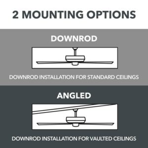– Dual-Mount Hanging Options: A multi-position fan with 2 hanging options; Standard option offers a 4 inch downrod (included); Angled mount option allows for hanging on vaulted ceilings with a longer downrod (sold separately)