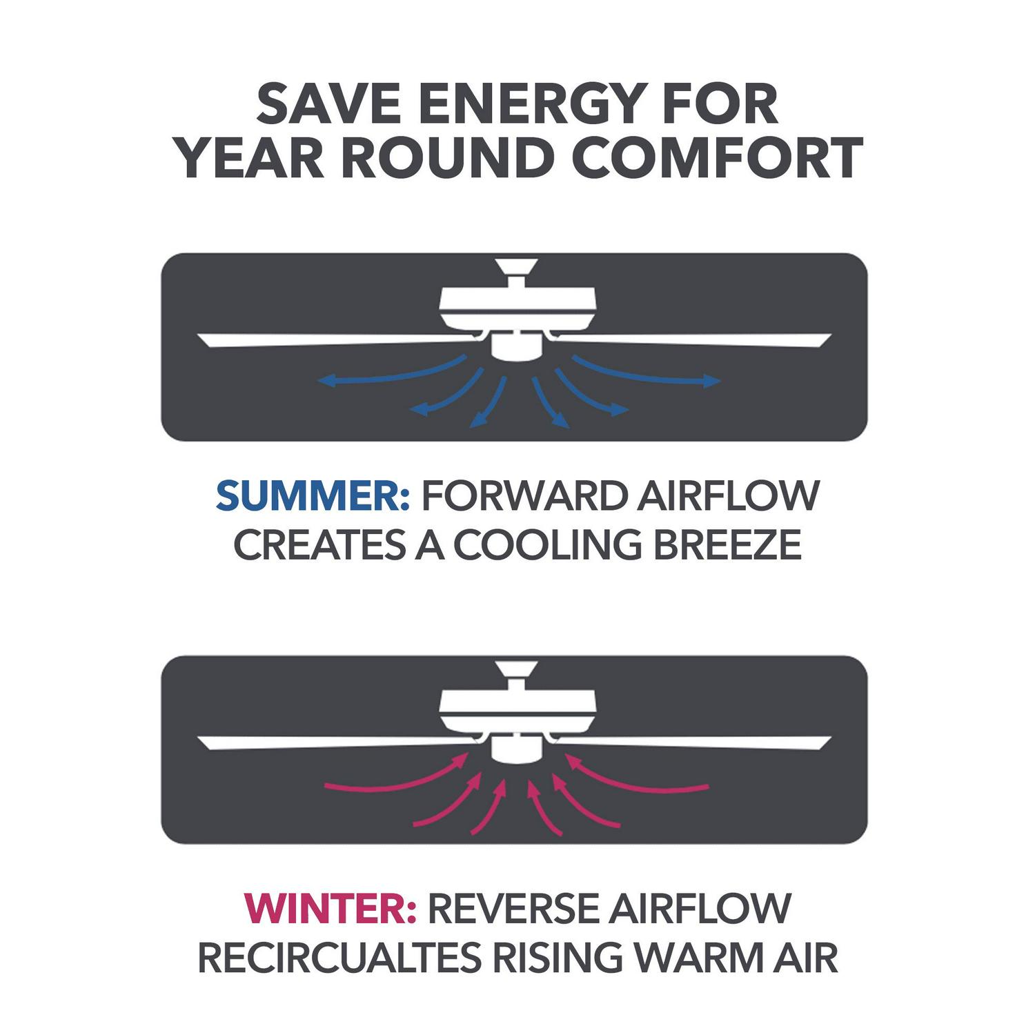 – Reversible Fan For All Seasons: Improves air circulation in winter and summer; During summer, this ceiling fan optimizes airflow to enhance comfort; During winter, change the direction to evenly distribute warm air on low speed