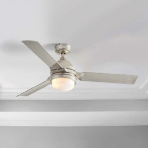 The Better Homes & Gardens 54″ Outdoor 3 Blade Ceiling Fan in Satin Nickel is the perfect addition to your outdoor space, serving up both adequate air flow and a contemporary style. With three remote-controlled adjustable speed settings, this fan is sure to deliver a high quality, quiet performance. It is very easy to install and can be conveniently mounted from both standard and angled ceilings. It includes two E26, A15 LED Energy Star bulbs, sure to illuminate your space through a timeless frosted globe. It is wet-rated and is a great choice for large to medium sized porches, patios, gazebos, breezeways, garages, balcony or verandas. Our goal is to provide you quality products with a desirable aestetic that is friendly to your wallet and doesn’t break the bank.