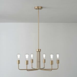 Better Homes & Gardens 6-Light Chandelier encompasses all that is farmhouse chic with its classic shape, rustic Burnished Brass finish and branching arms. Add this ceiling light above a solid wood table or a living room with a neutral color palette for a stunning look – the options are endless! Plus, you can change the look of your light simply by changing the bulbs, The standard E26 base gives you lots of choices. Vintage Edison bulbs will inspire the farmhouse chic design trend. Use designer bulbs to create a modernizes, cottage core design. Try Smart Bulbs to enhance your space and have ideal mood lighting for any situation.