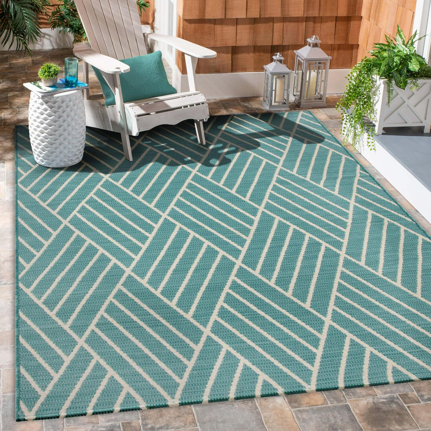 Better Homes and Gardens 7′ x 10′ Turquoise Diamond Outdoor Rug