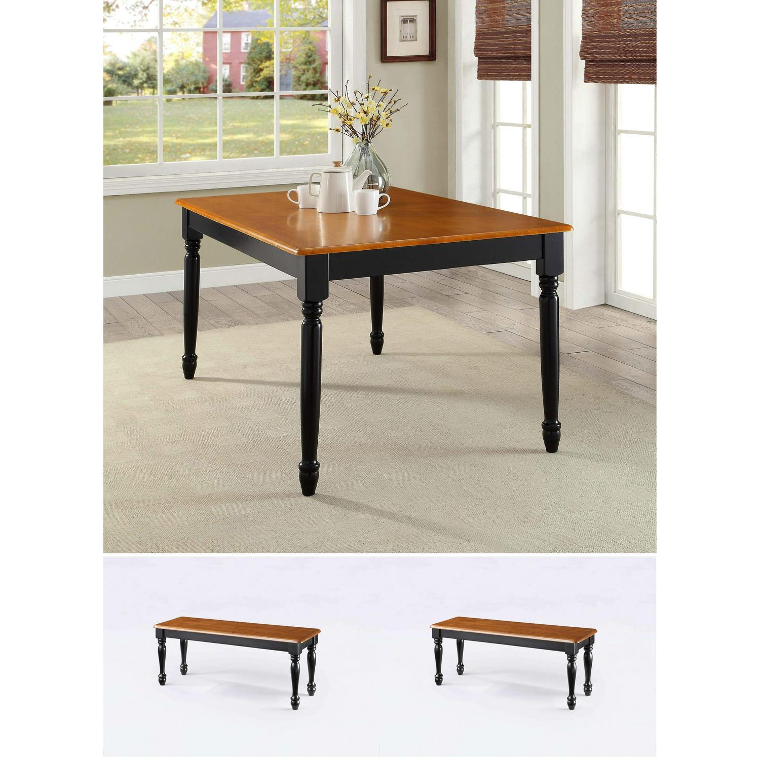 Update your dining room with this stylish Black and Oak Better Homes and Gardens Autumn Lane Dining Set. It features one durable solid wood table and two coordinating dining benches. This three-piece dining set features stained oak and painted black finishes that will add sophistication and charm to your dining room.