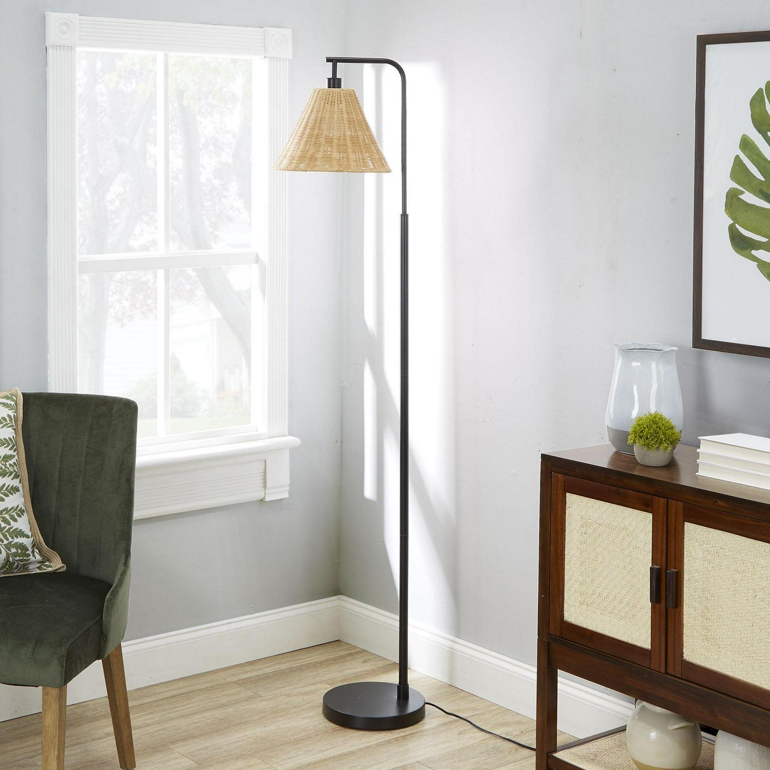 Better Homes and Gardens Black Metal Floor Lamp with Rattan Shade