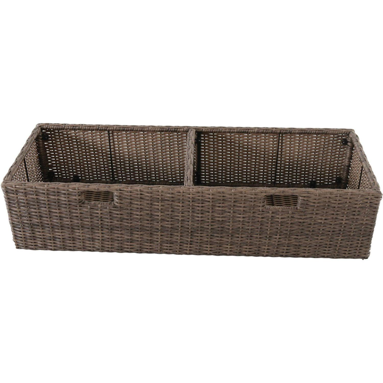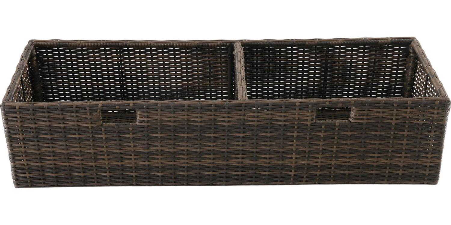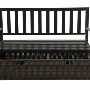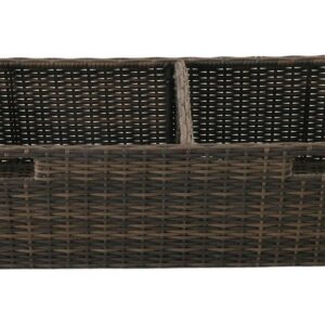 – Includes a multi-use storage box crafted with brown, all-weather wicker