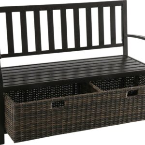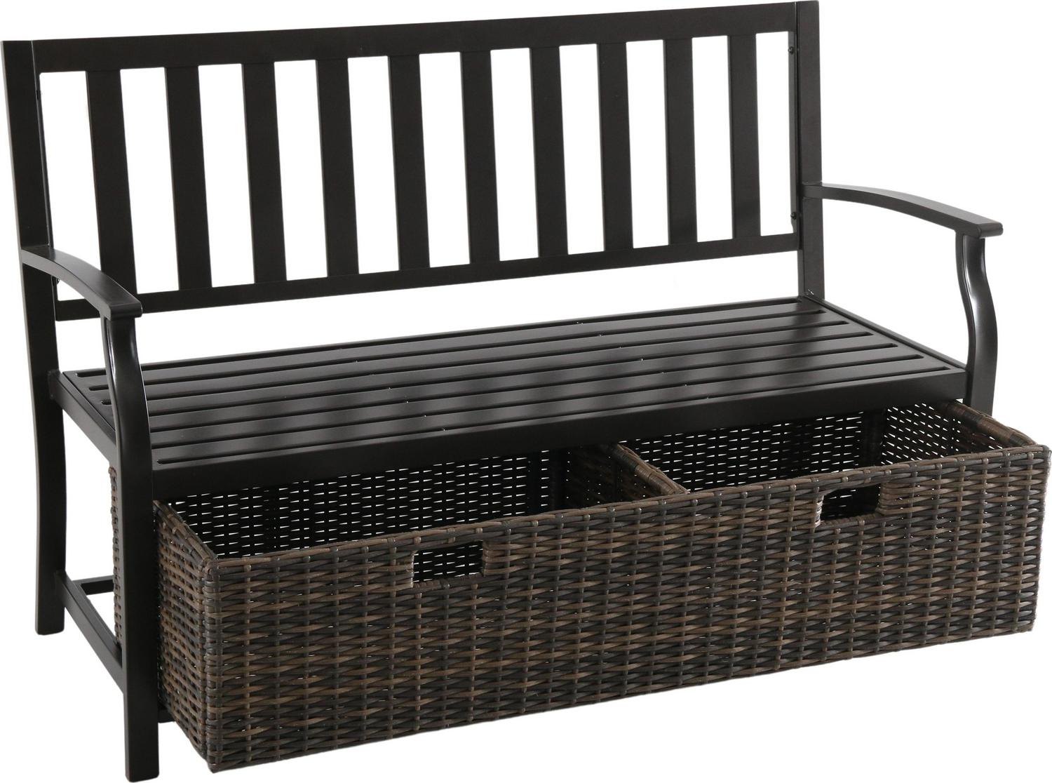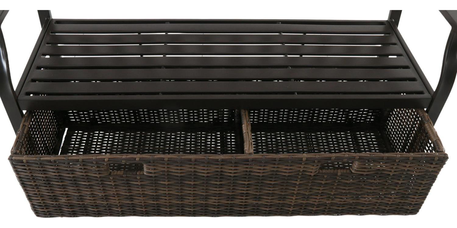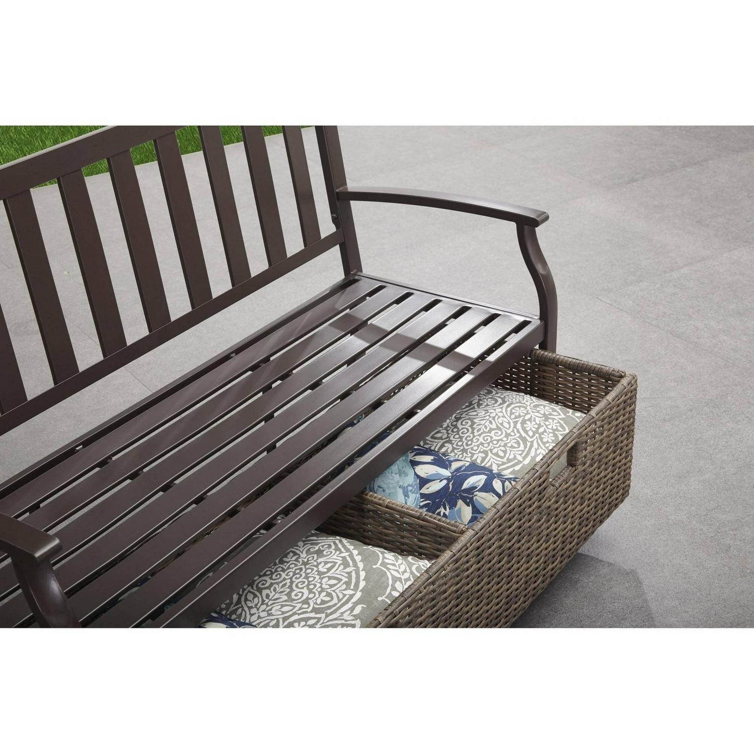 Better Homes and Gardens Camrose Farmhouse Steel Outdoor Bench with Wicker Storage Box, Bronze/Brown