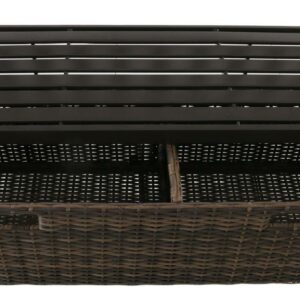 - Includes a multi-use storage box crafted with brown, all-weather wicker