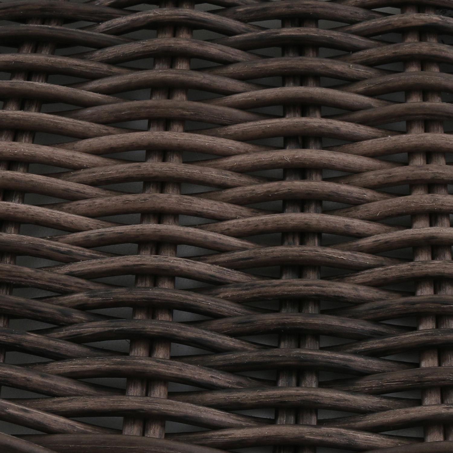 – Sturdy frame constructed of rust-resistant steel and wrapped in dark brown, all-weather, handwoven wicker