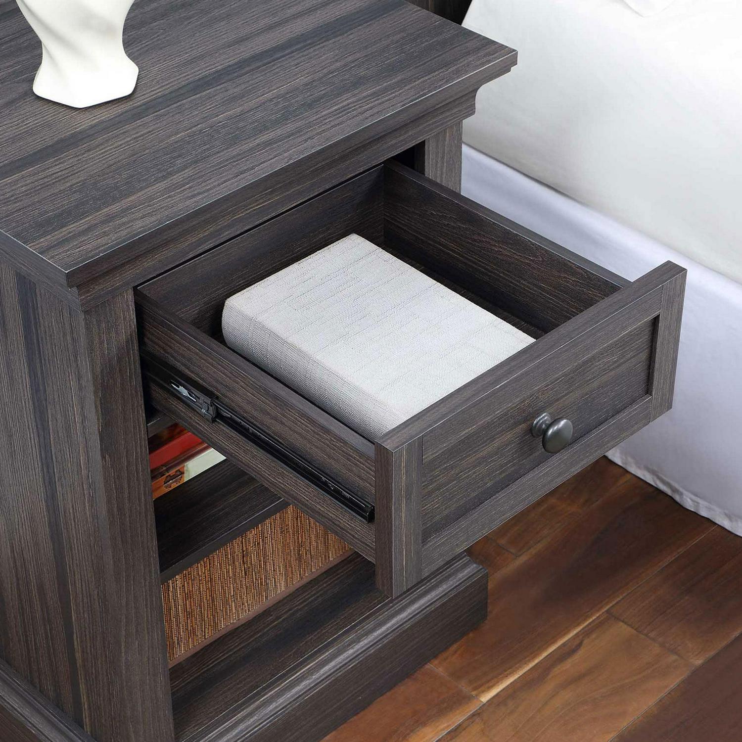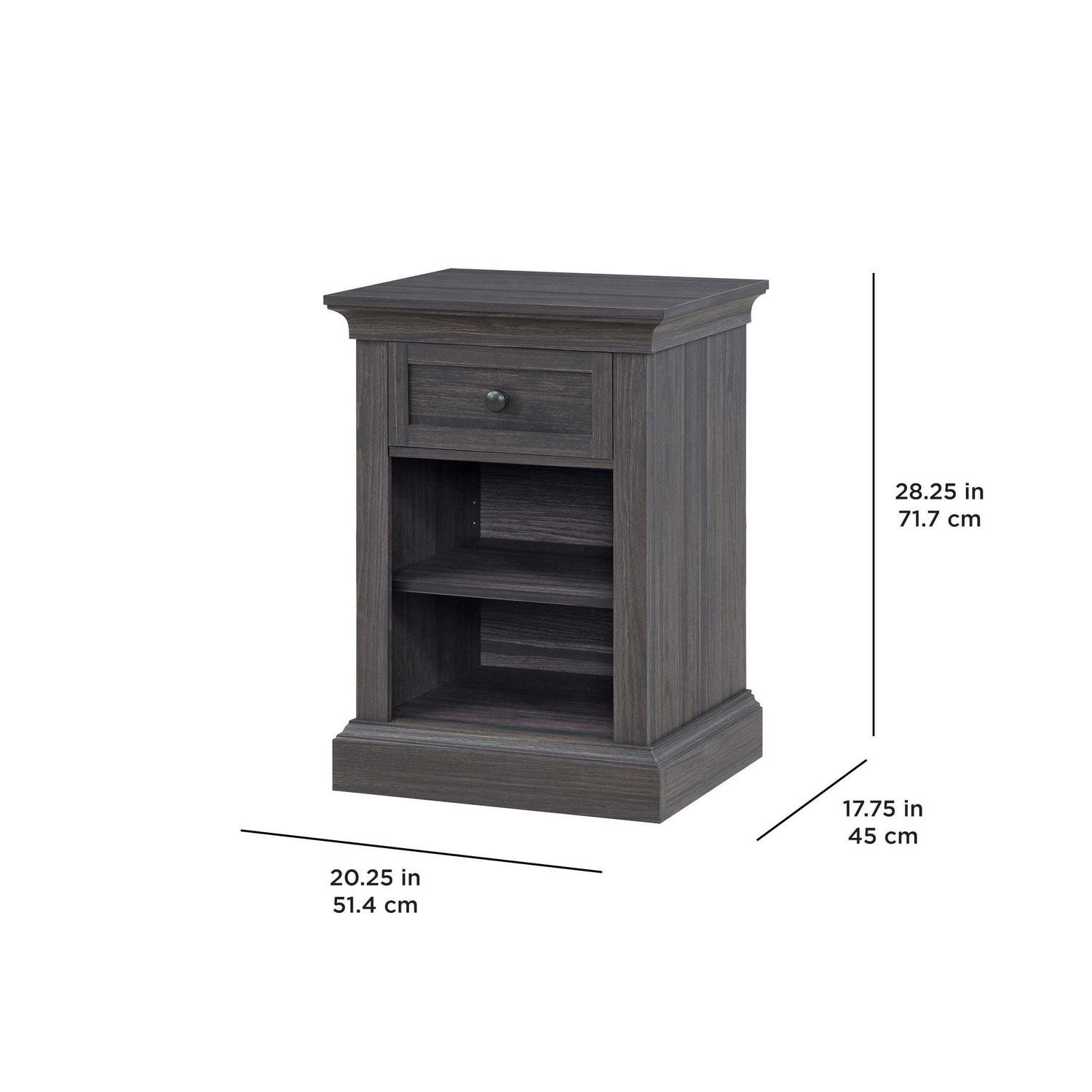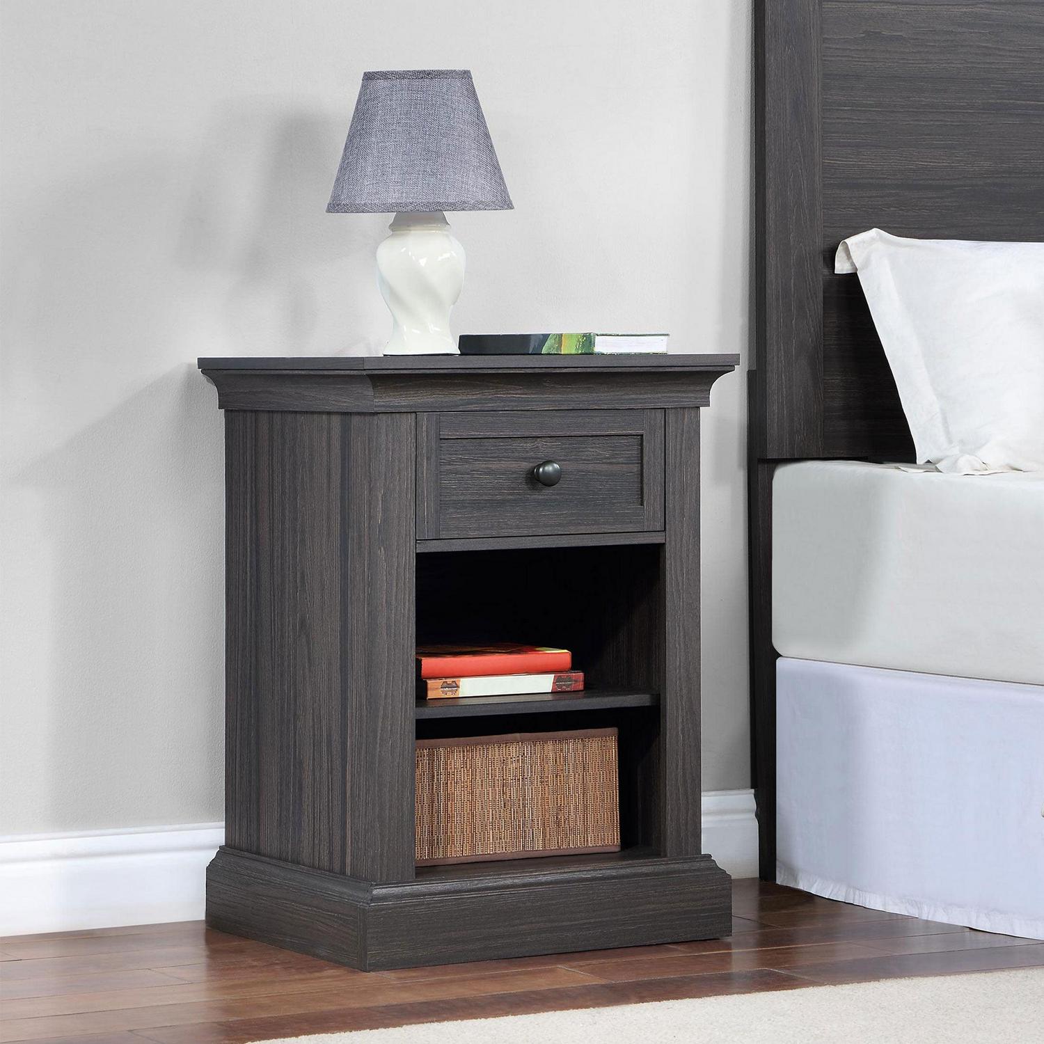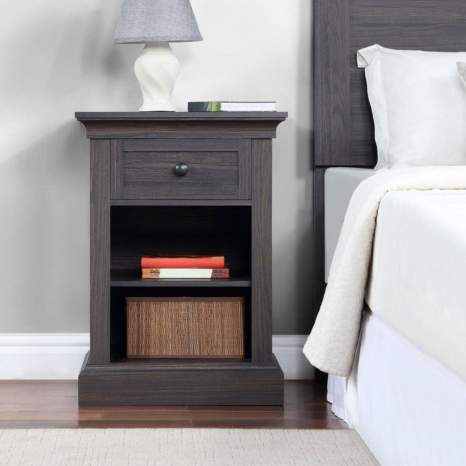 The Better Homes and Gardens Canton Nightstand is a stylish and practical addition to any bedroom in your home. One of the standout features of the Canton Nightstand is its small storage drawer. This drawer is perfect for keeping essentials close at hand, such as a book, reading glasses, or a phone charger. In addition to the small storage drawer, the Canton Nightstand also has an open lower space that includes an adjustable shelf. This space provides additional storage options and can be used for placing larger items like books, magazines, or decorative items. The nightstand is made from high-quality materials, and its compact size makes it an ideal choice for smaller bedrooms. It is also easy to assemble, making it a convenient choice for anyone who wants to add a little extra storage space to their bedroom without having to hire a professional.