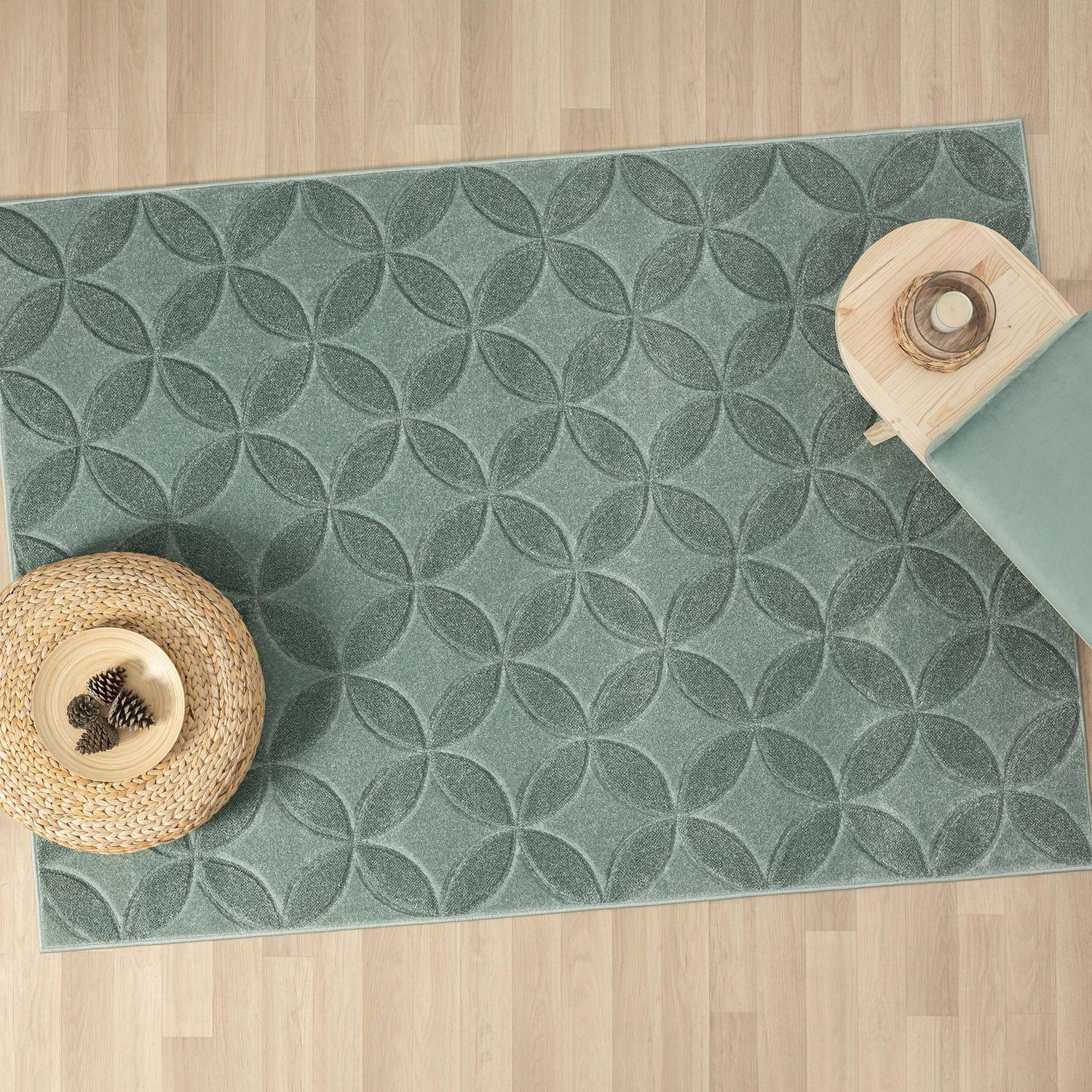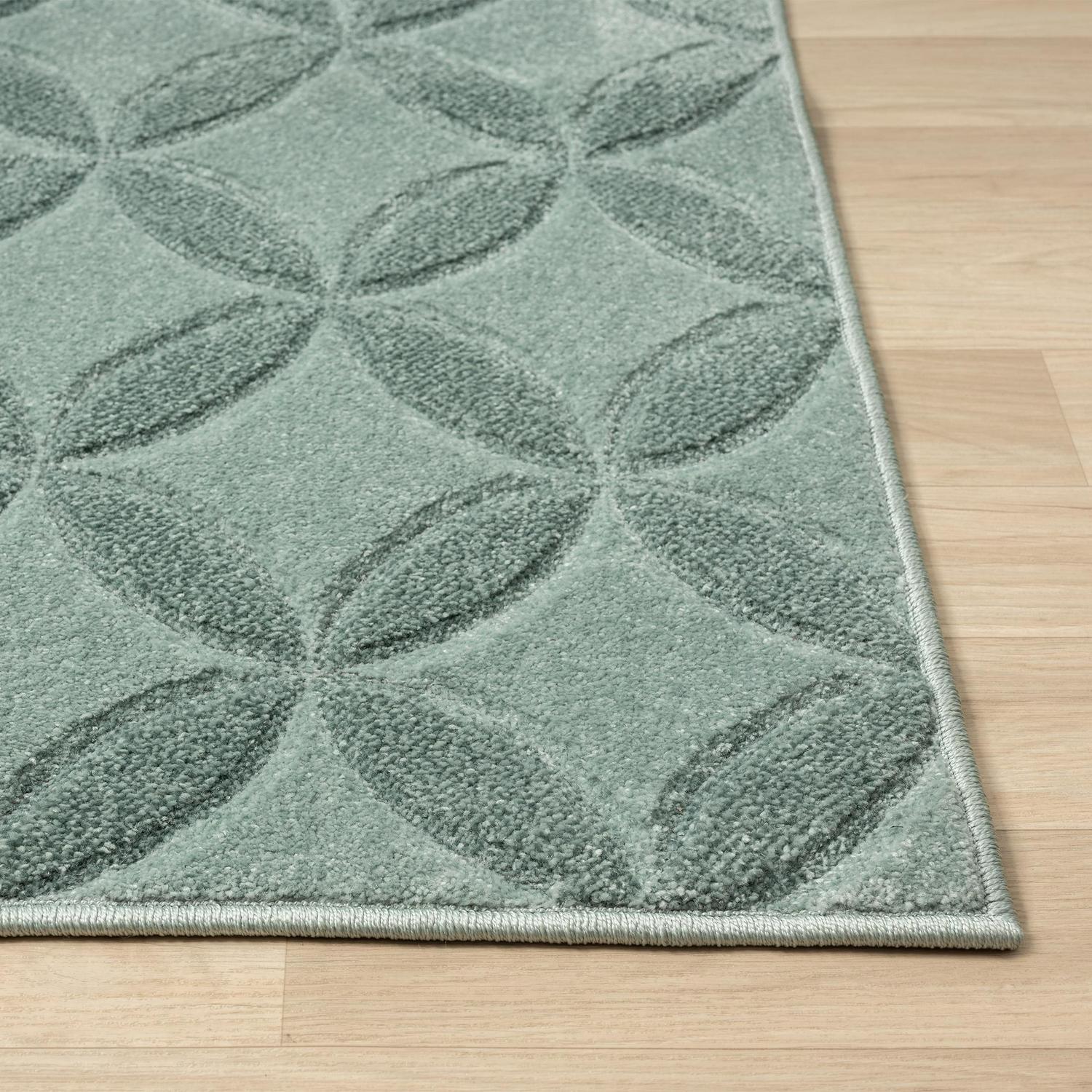 Better Homes and Gardens Carved Geo Indoor Accent Rug, Aqua Petals, 5′ x 7′