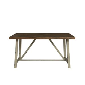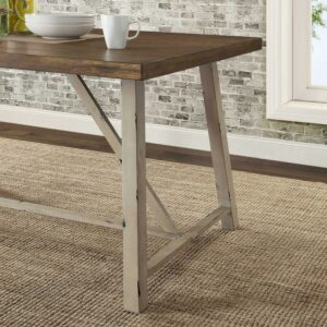 The Collin Dining Table from Better Homes & Gardens brings a contemporary twist to rustic construction. This stylish table combines provincial and contemporary into a modern design that is perfect for your kitchen, breakfast nook, or dining room. It can even be used as a desk in your study or home office. The durable table features a multi-step wood tabletop with a distressed white table base giving the table a simplistic yet stylish design. The natural finish pairs well with any most any existing interior decor or furniture style from rustic and traditional to contemporary and modern and all things in between. With comfortable seating for up to four people, this fabulous table is ideal for intimate gatherings and celebrations. It is easy to assemble so you can begin to enjoy it almost immediately. Combine with the Better Homes & Gardens Collin Dining Chairs (sold separately) to further complement your dining room.