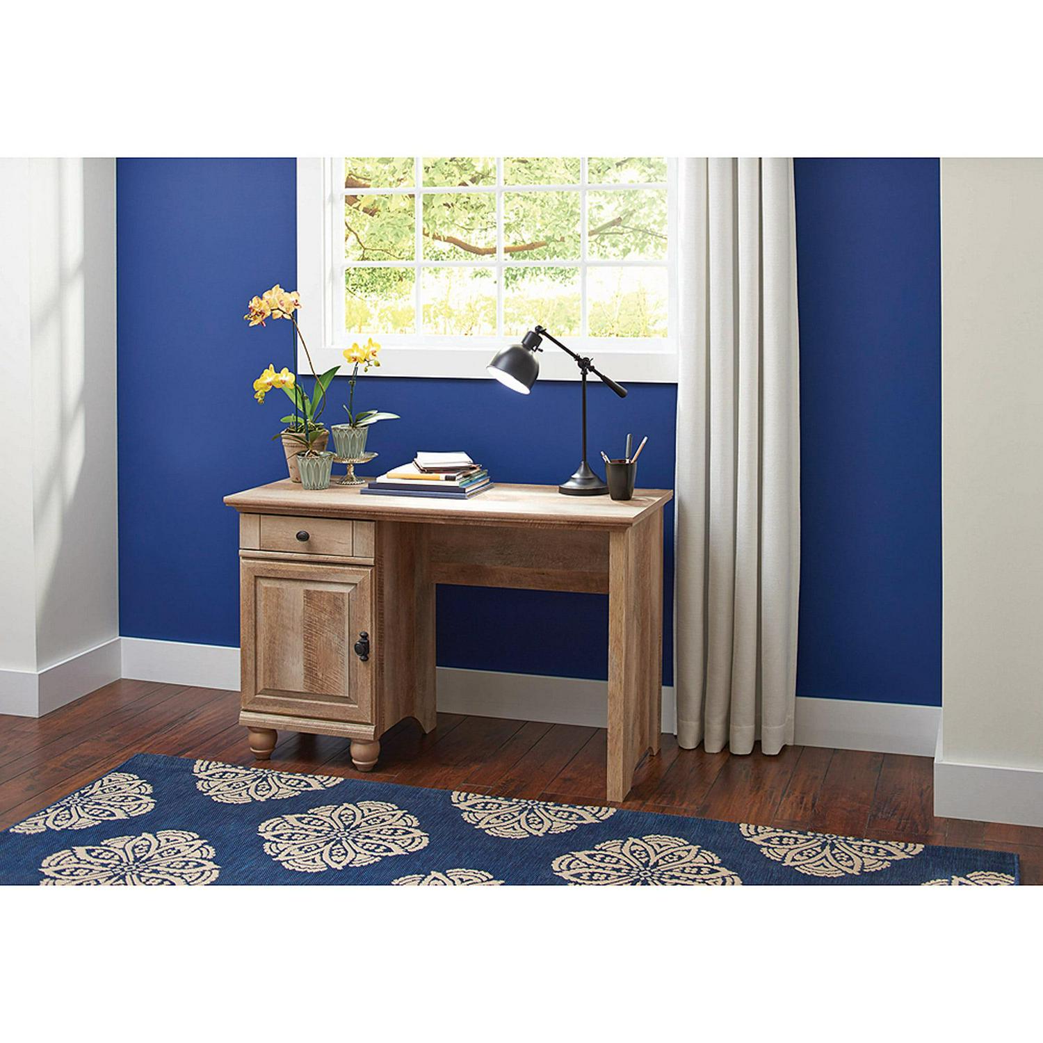 Add a rustic look and feel to your space with the Better Homes & Gardens Crossmill Desk, Weathered Finish. This transitional piece adds utility and charm to home offices, sitting rooms, bedrooms, and more. The Better Homes & Gardens desk features a stately yet minimalistic design that blends easily into nearly any setting, with a sturdy build to withstand the rigors of regular use. The unit is made from hardwoods with solid feet for optimal stability on all surfaces. It features two options for closed storage, including a desk drawer and a cupboard with an adjustable shelf. The drawer features metal runners and safety stops for effortless operation. The back of the desk features cord management detailing, for added ease of use. The country-style desk is available in your choice of finishes. Some assembly is required before use. We hope you like what you see. Sauder designers travel the world and bring back the best and latest in style, finish, and color trends. This inspiring world travel is evident in the cutting-edge and innovative furniture solutions we offer to you!